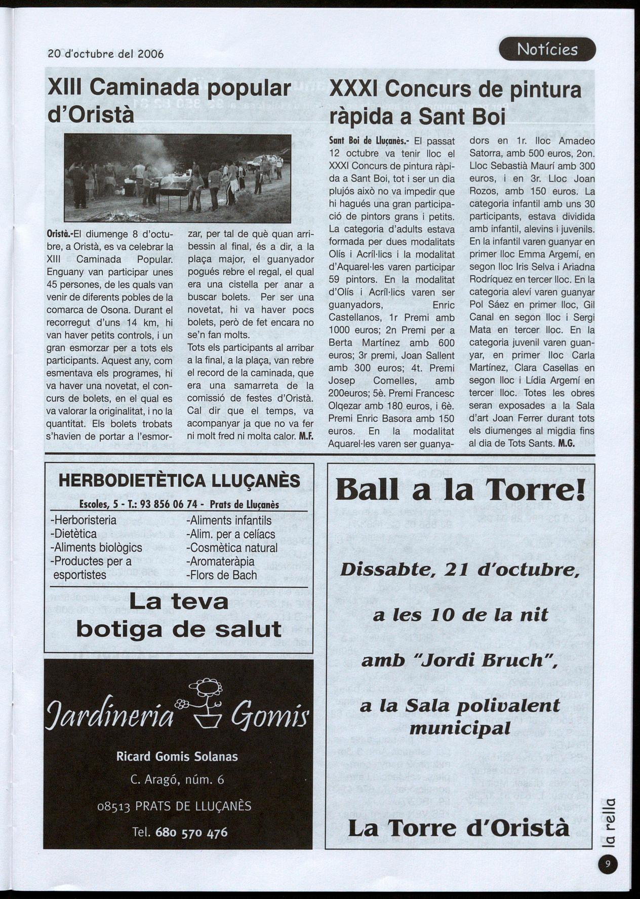 Segons dades facilitades per Pere Cors, d'Oristà, al setembre del 2006 van