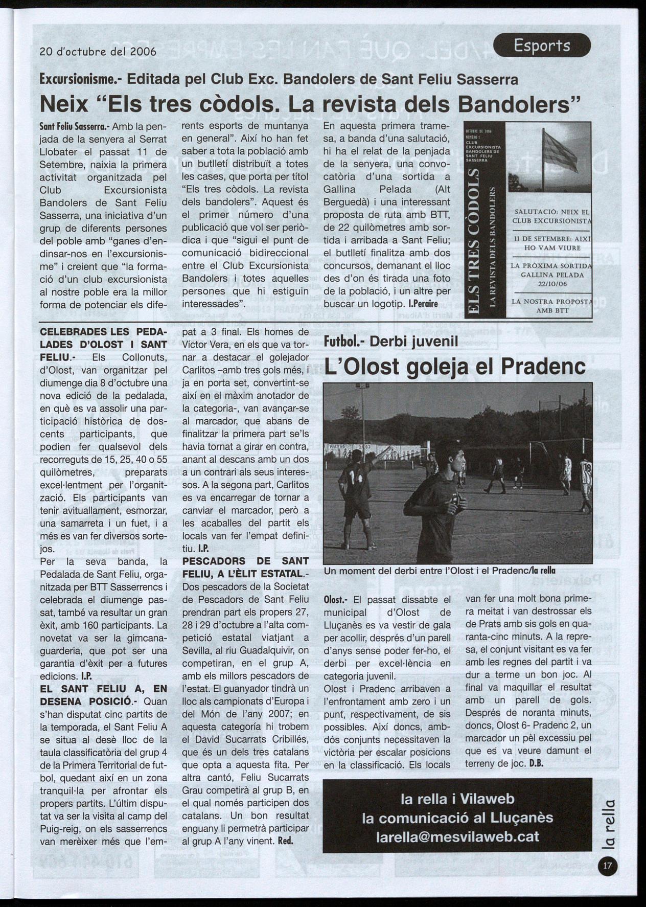 Excursionisme.- Editada pel Club Exc. Bandolers de Sant Feliu Sasserra Neix "Els tres