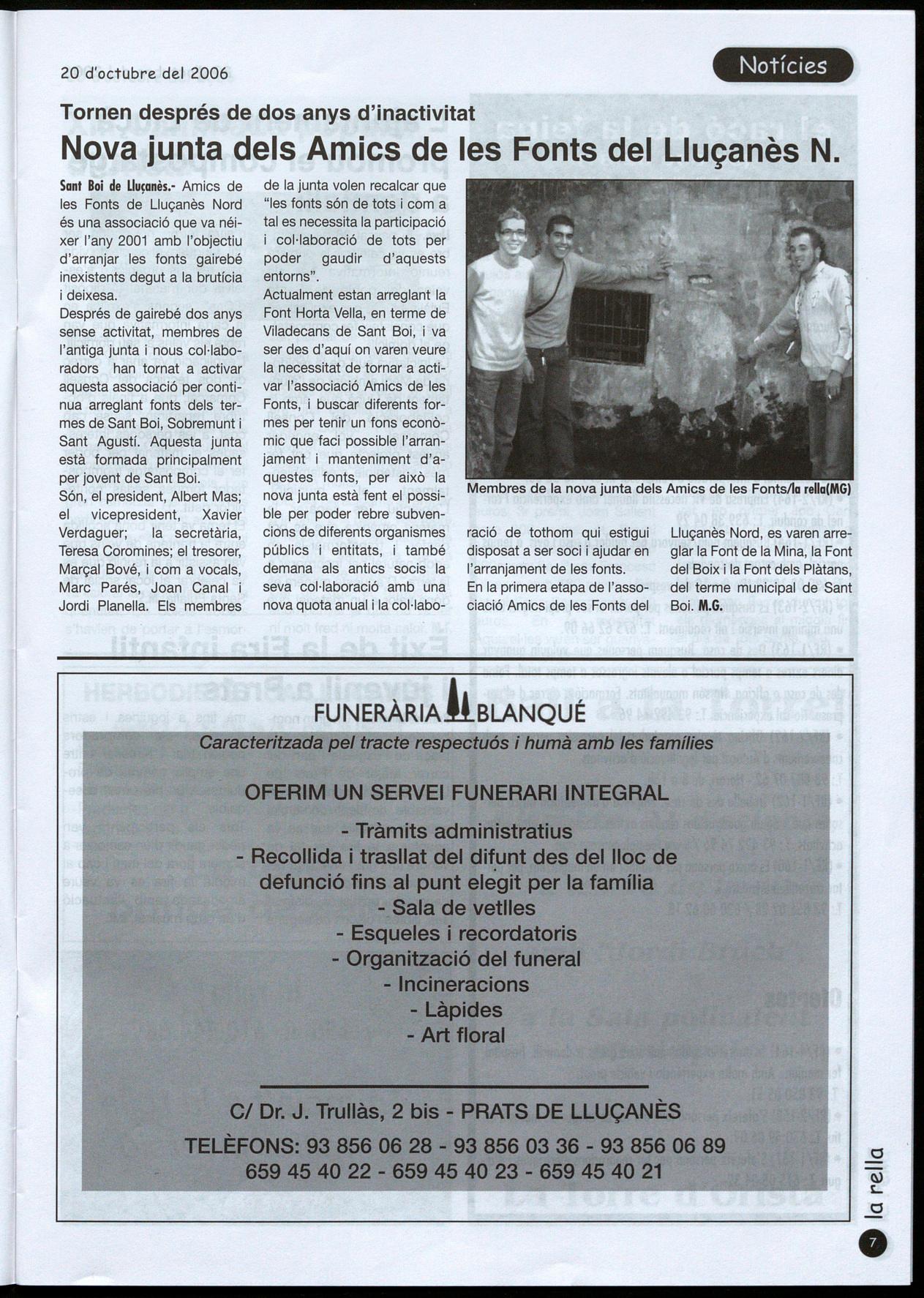 Sant Boi de Lluçanès.- Amics de les Fonts de Lluçanès Nord és una associació que va néixer l'any 2001 amb l'objectiu d'arranjar les fonts gairebé inexistents degut a la brutícia delxesa.: