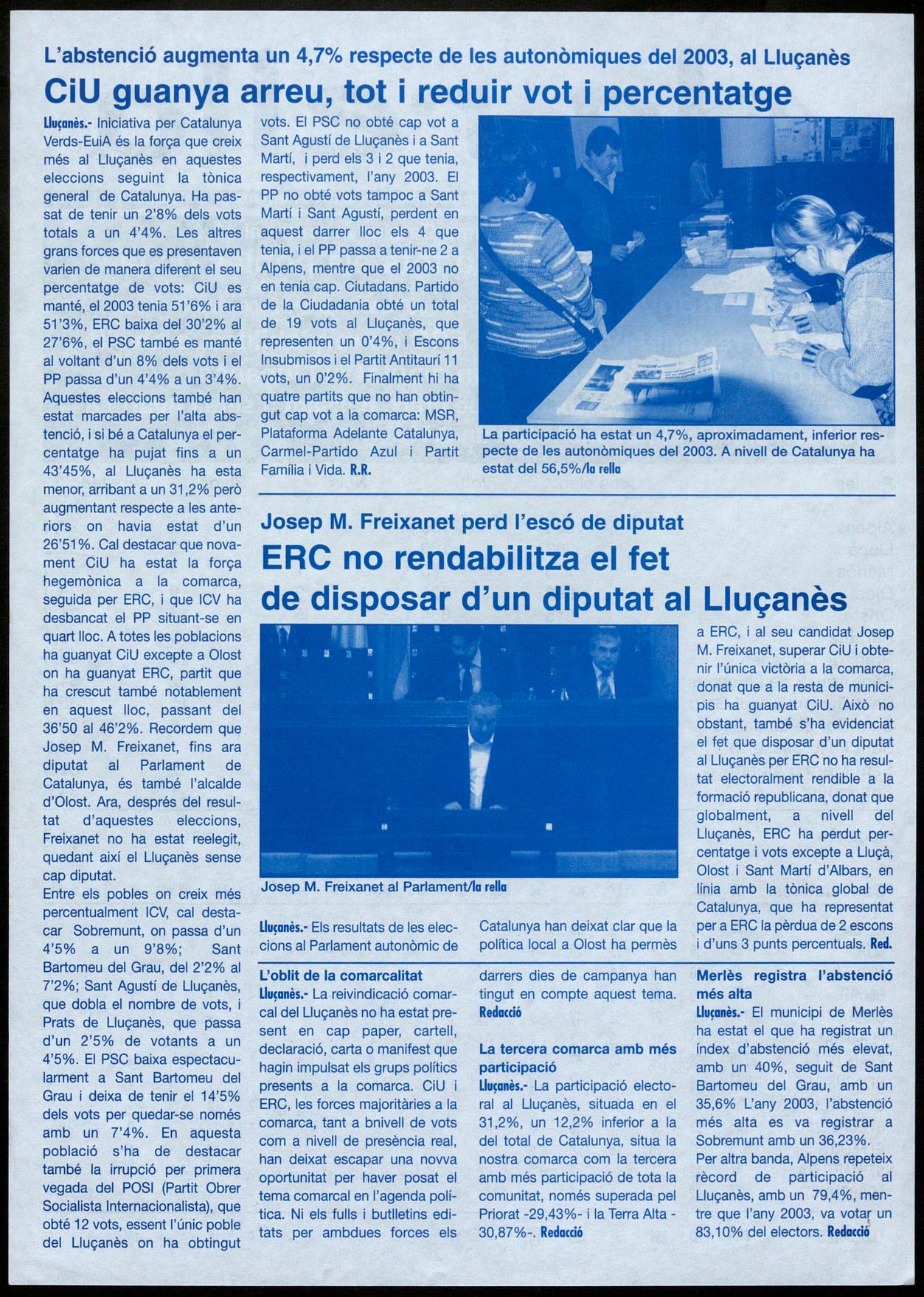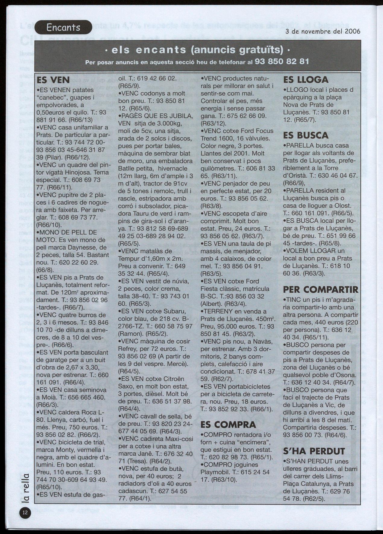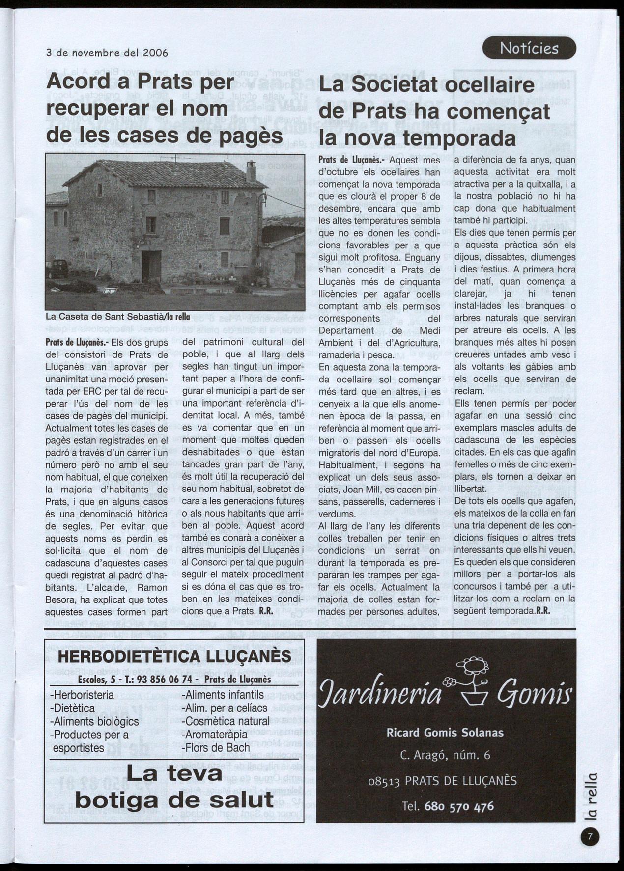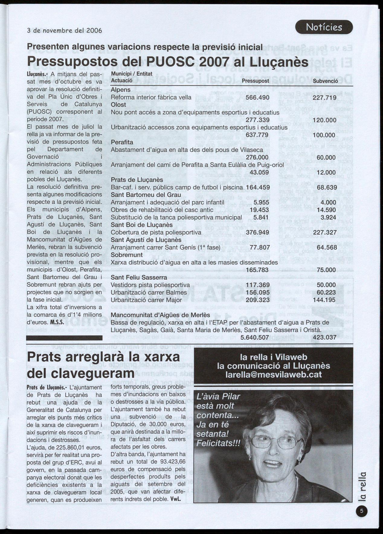 1.655.222 d'euros del puasc al 'Lluçanès peral 2007 Pàg. 5 97 participants a la BTT rats de 'Lluçanès acorda recuperar, en el carrerer, el nom de les cases de pagès Pàg.7