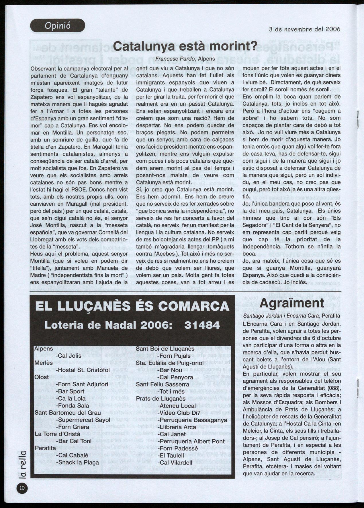 Llu�anès." Amb un important nivell de participació, es van desenvolupar els actes de l'edició 2006 del Correllengua al Lluçanès, organitzats per la comissió comarcal amb la col-laboració de persones, ajuntaments i associacions de diferents pobles de la comarca, durant la jornada del dissabte, dia 21 d'octubre.