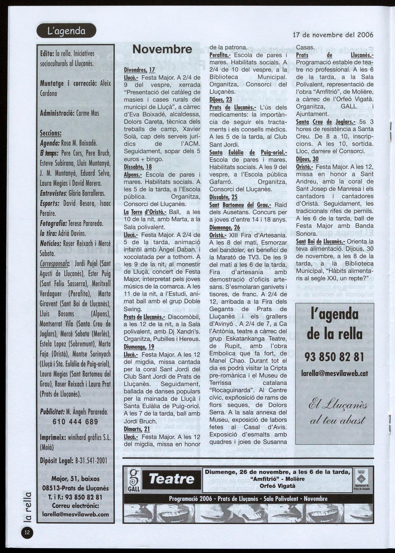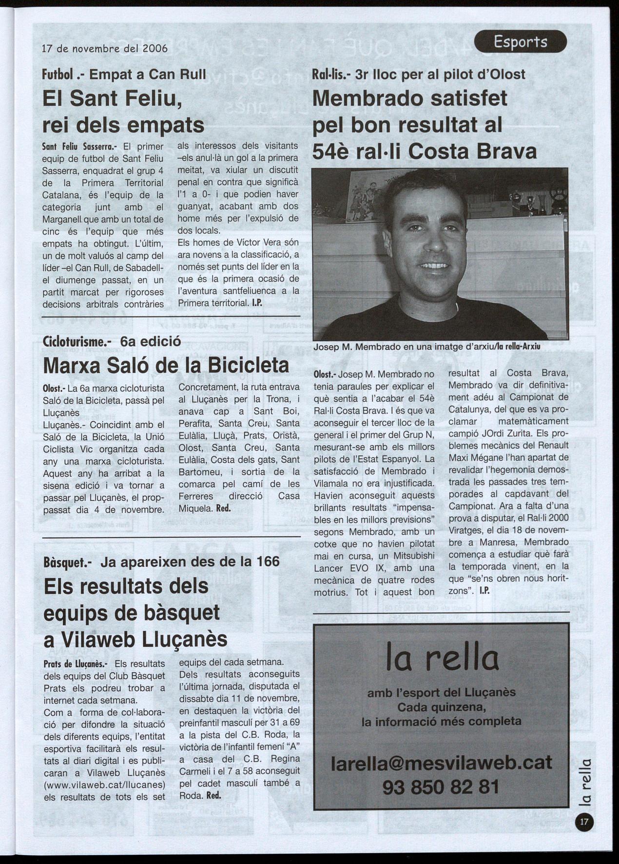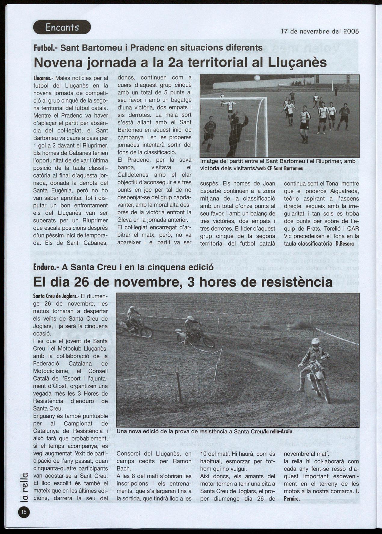 novembre al matí. la rella hi col·laborarà com cada any fent-se ressò d'aquest important esdeveniment en el terreny de les motos a la nostra comarca. I. Peraire.
