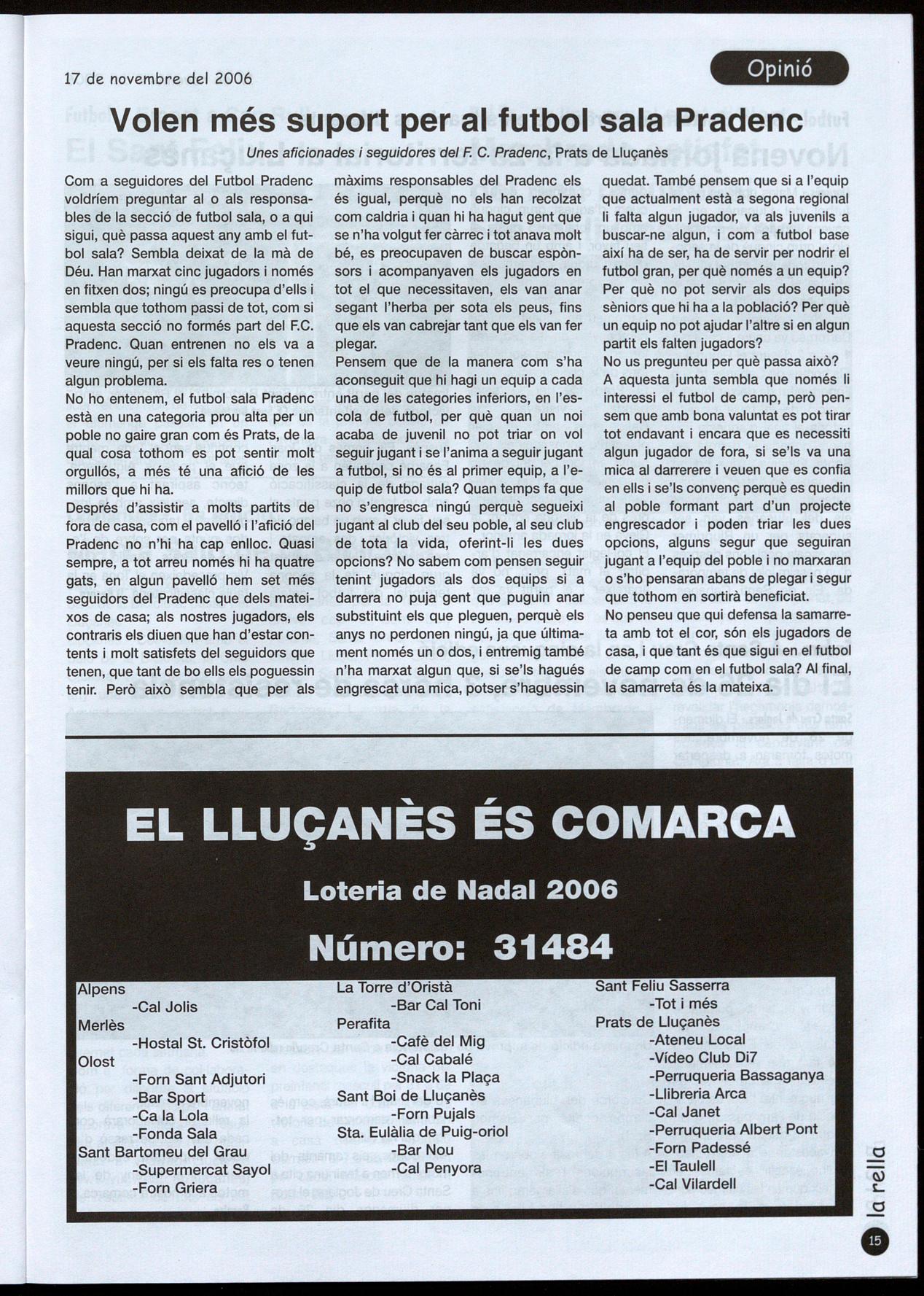 sió territorial si s'obre aquest debat, per tal que el Lluçanès esdevingui un territori amb autonomia suficient per desenvolupar les seves pròpies polítiques. R.R.