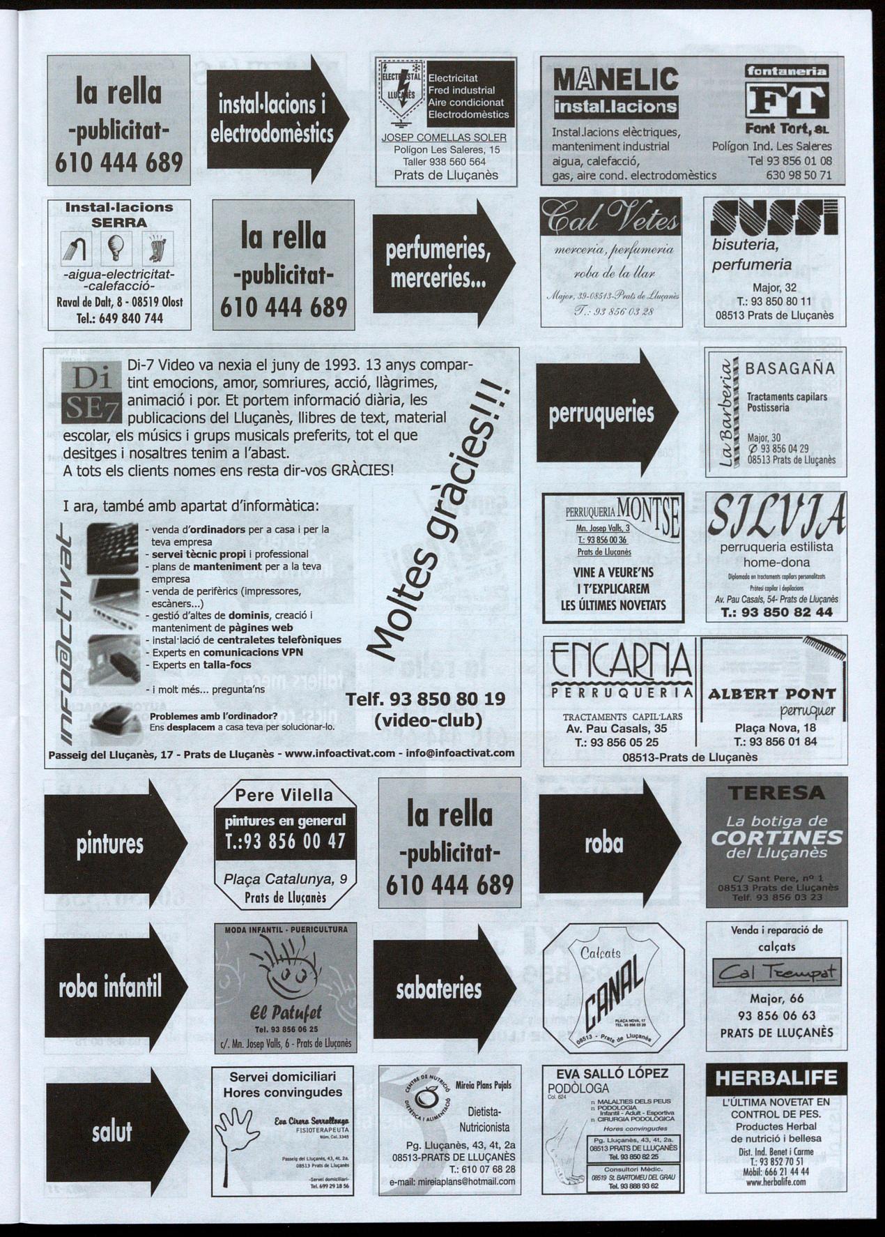 Passeig del Lluçanès. 17 T.: 93 B50 BO 19 OBS1 a-Prate de Lluçanès lV·ELECTRO ·HI·FI·K7 CO