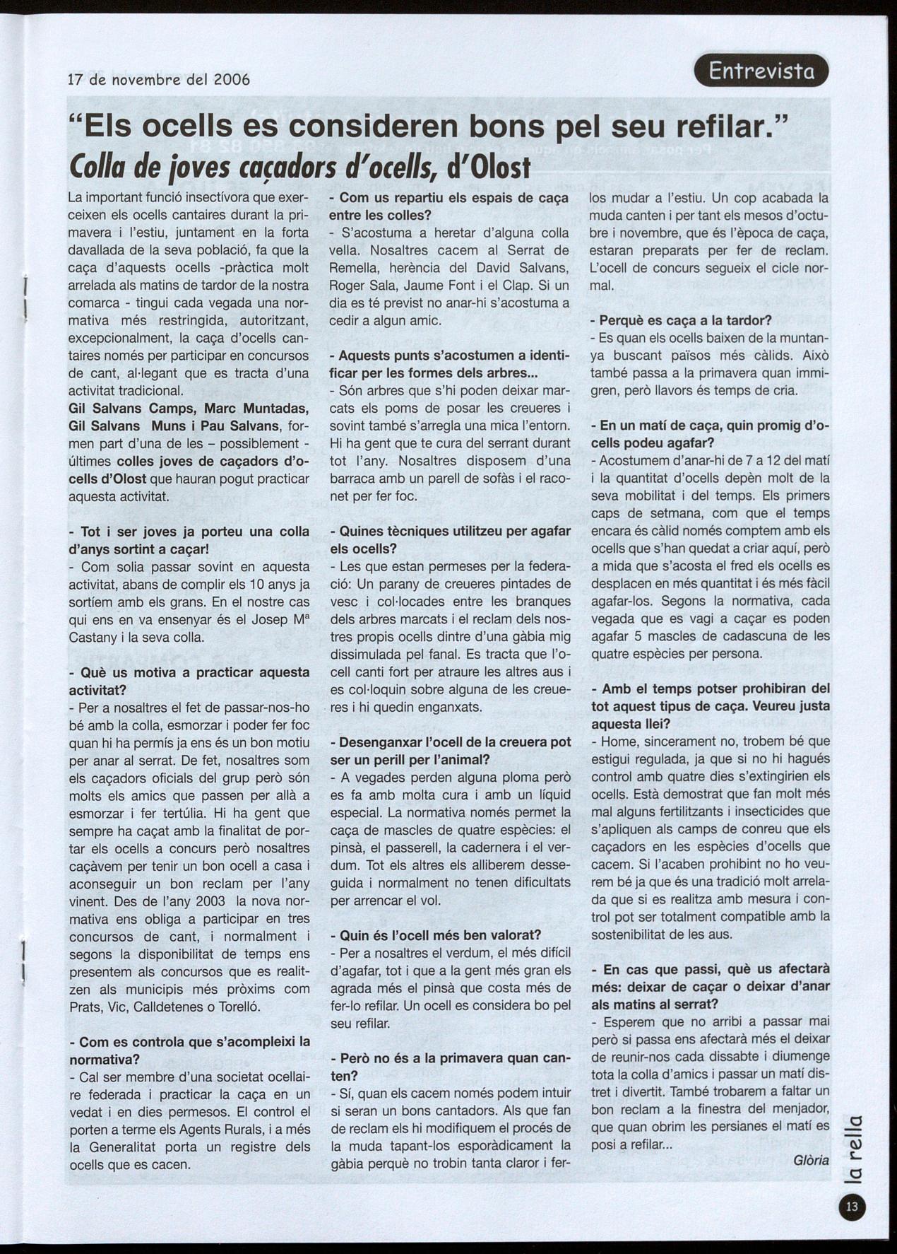 Colla de joves ocellaires, d'Olost, a l'entrevista de la pàgina13. Potser una de les últimes de jovent.