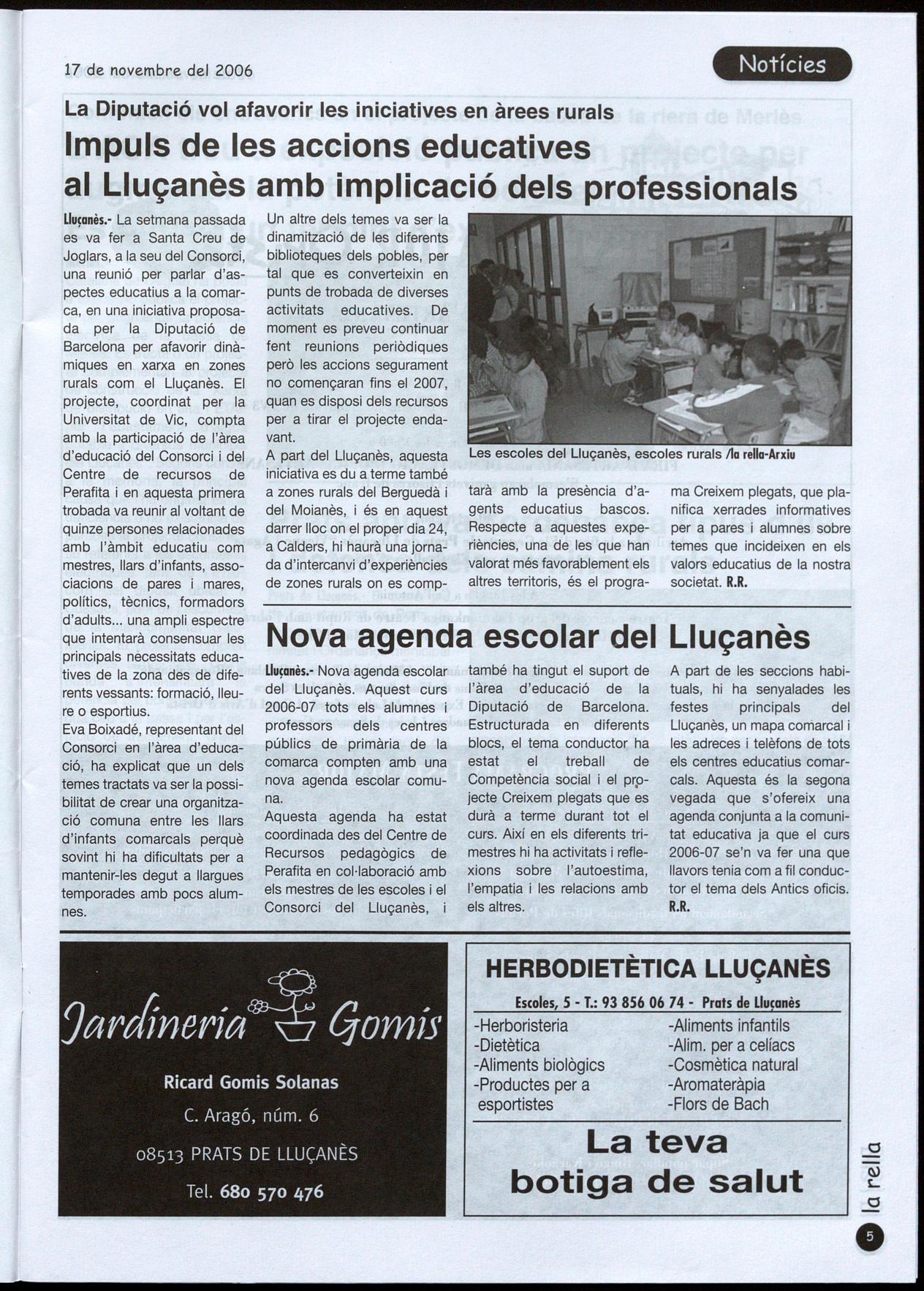 mb la col·laboració dela Diputació es vol donar un impuls a les actuacions en educació en un àmbitrural com el L:Iuçanès Pàg, 5