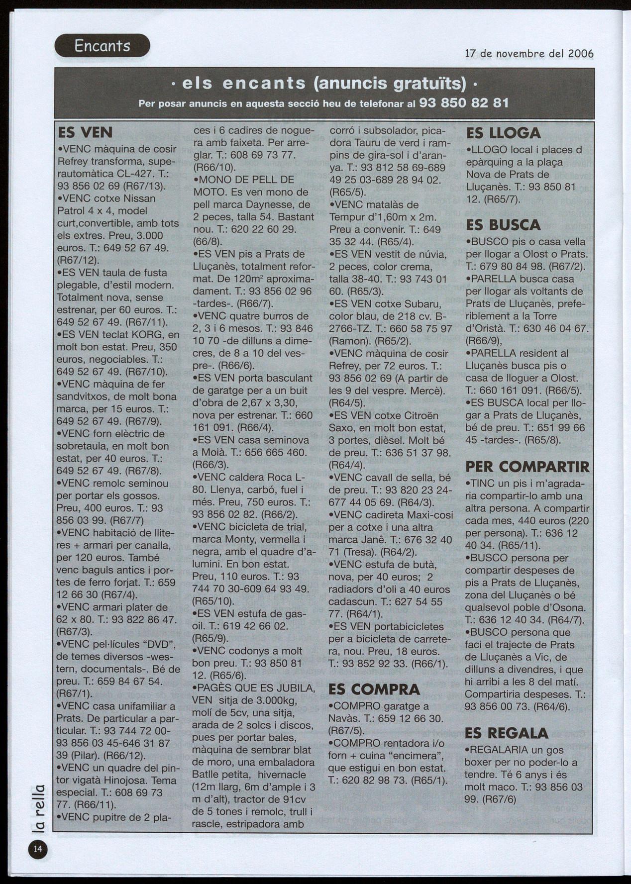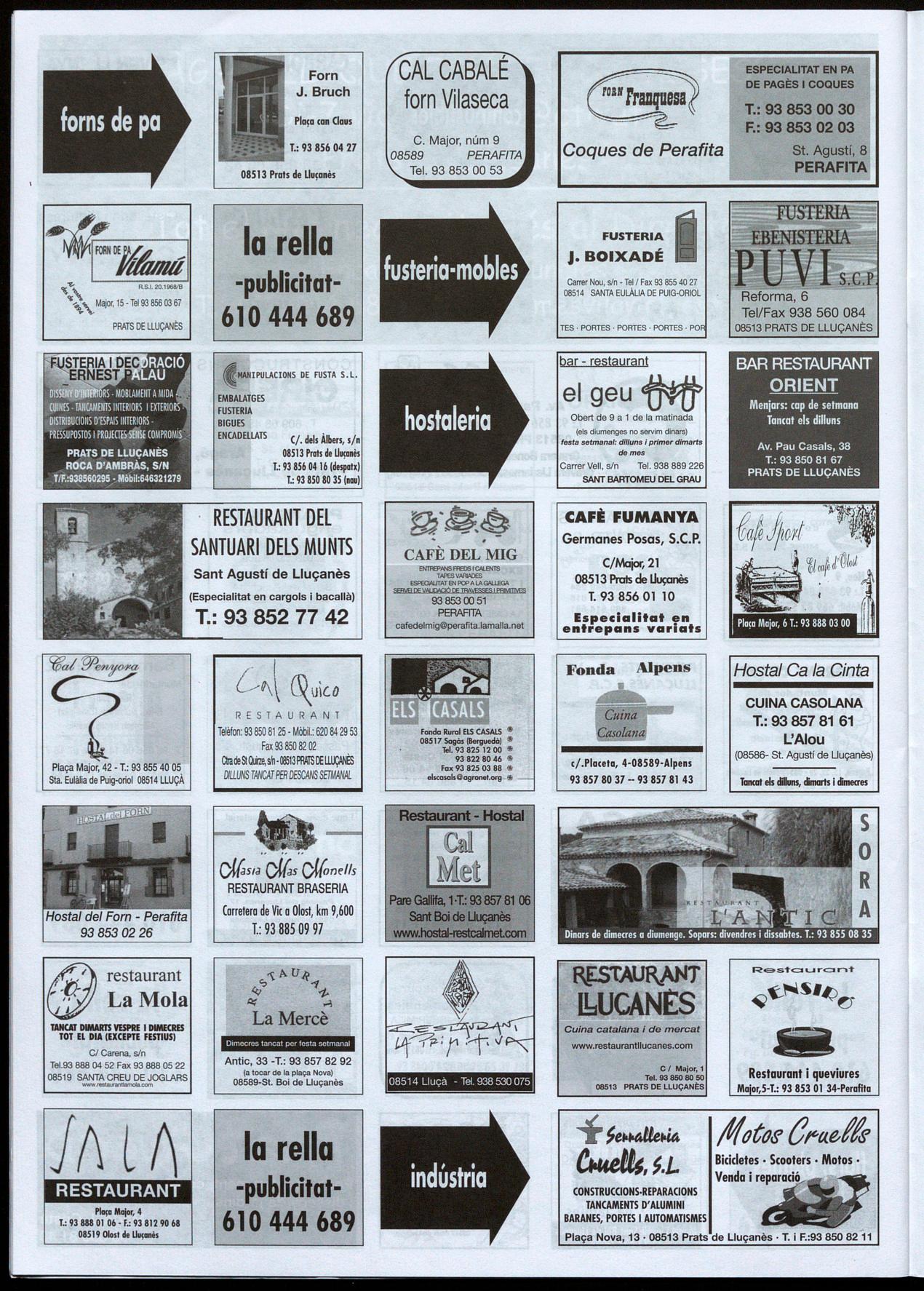 PlAÇA NOVA, 9 <l)93 856 0133 PRATS DE LLUÇANÈS
