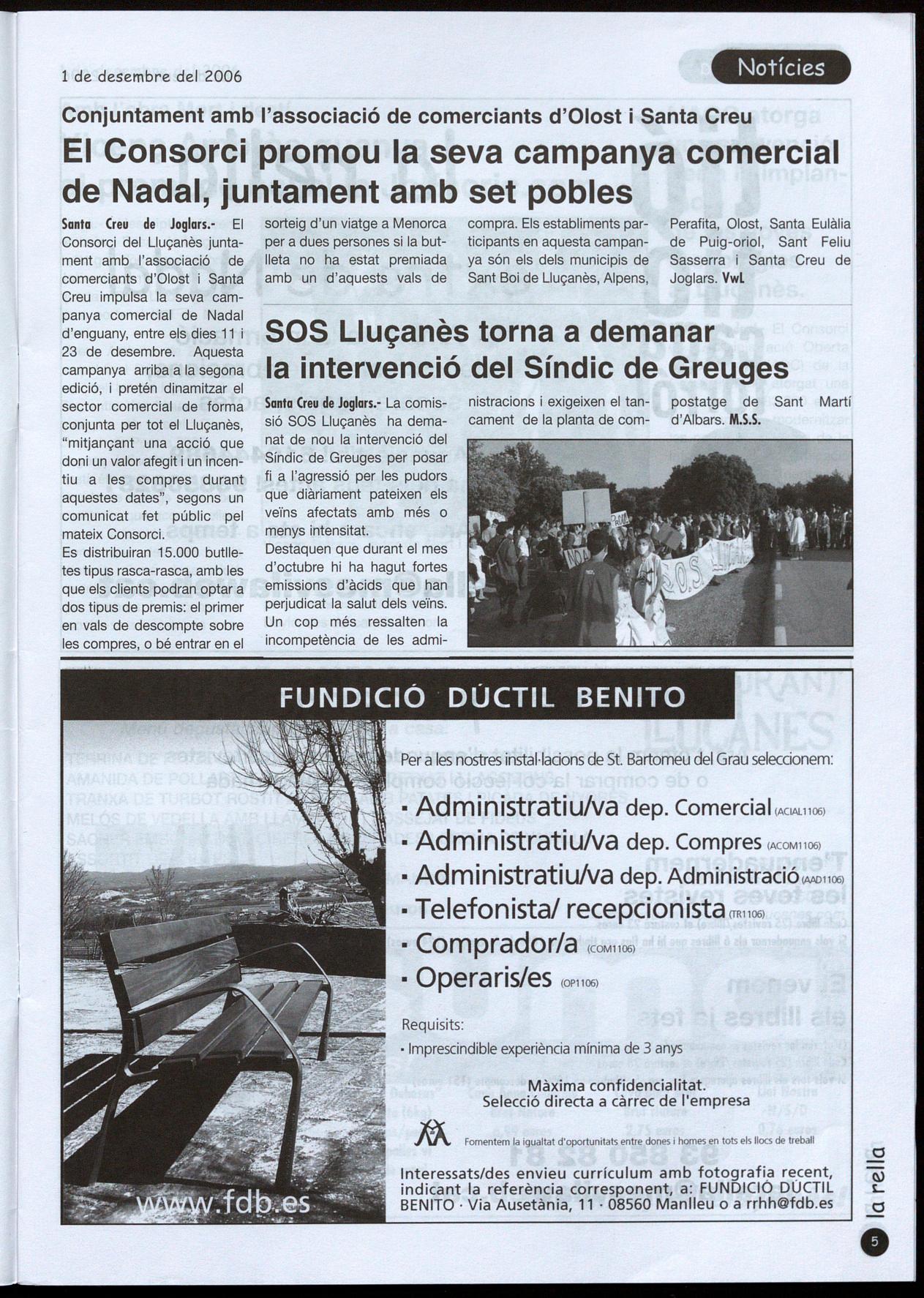 Santa (reu de Joglars.- El Consorci del Lluçanès juntament amb l'associació de comerciants d'Olost i Santa Creu impulsa la seva campanya comercial de Nadal d'enguany, entre els dies 11 23 de desembre. Aquesta campanya arriba a la segona edició, i pretén dinamitzar el sector comercial de forma conjunta per tot el Lluçanès, "mitjançant una acció que doni un valor afegit un incentiu a les compres durant aquestes dates", segons un comunicat fet públic pel mateix Consorci.