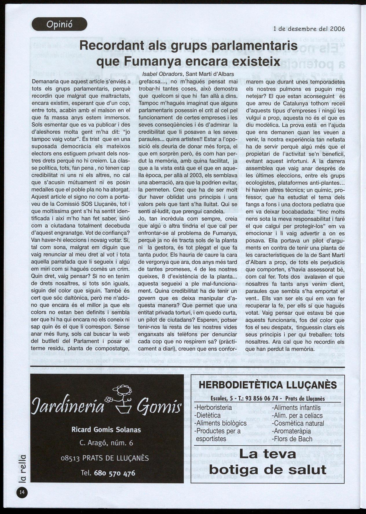 Santa Creu de Joglars.� La comissió SOS Lluçanès ha demanat de nou la intervenció del Síndic de Greuges per posar fi a l'agressió per les pudors que diàriament pateixen els veïns afectats amb més o menys intensitat. Destaquen que durant el mes d'octubre hi ha hagut fortes emissions d'àcids que han perjudicat la salut dels veïns.