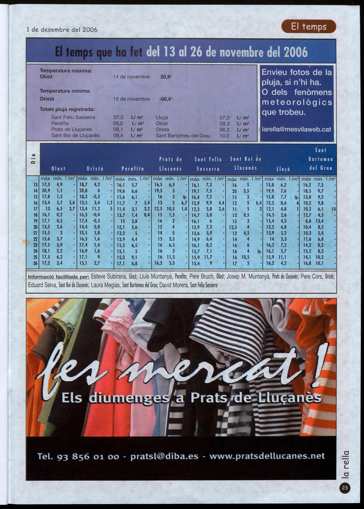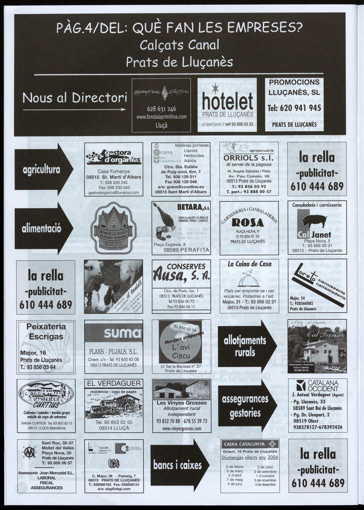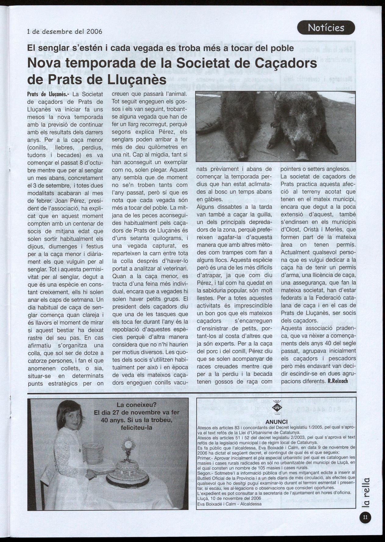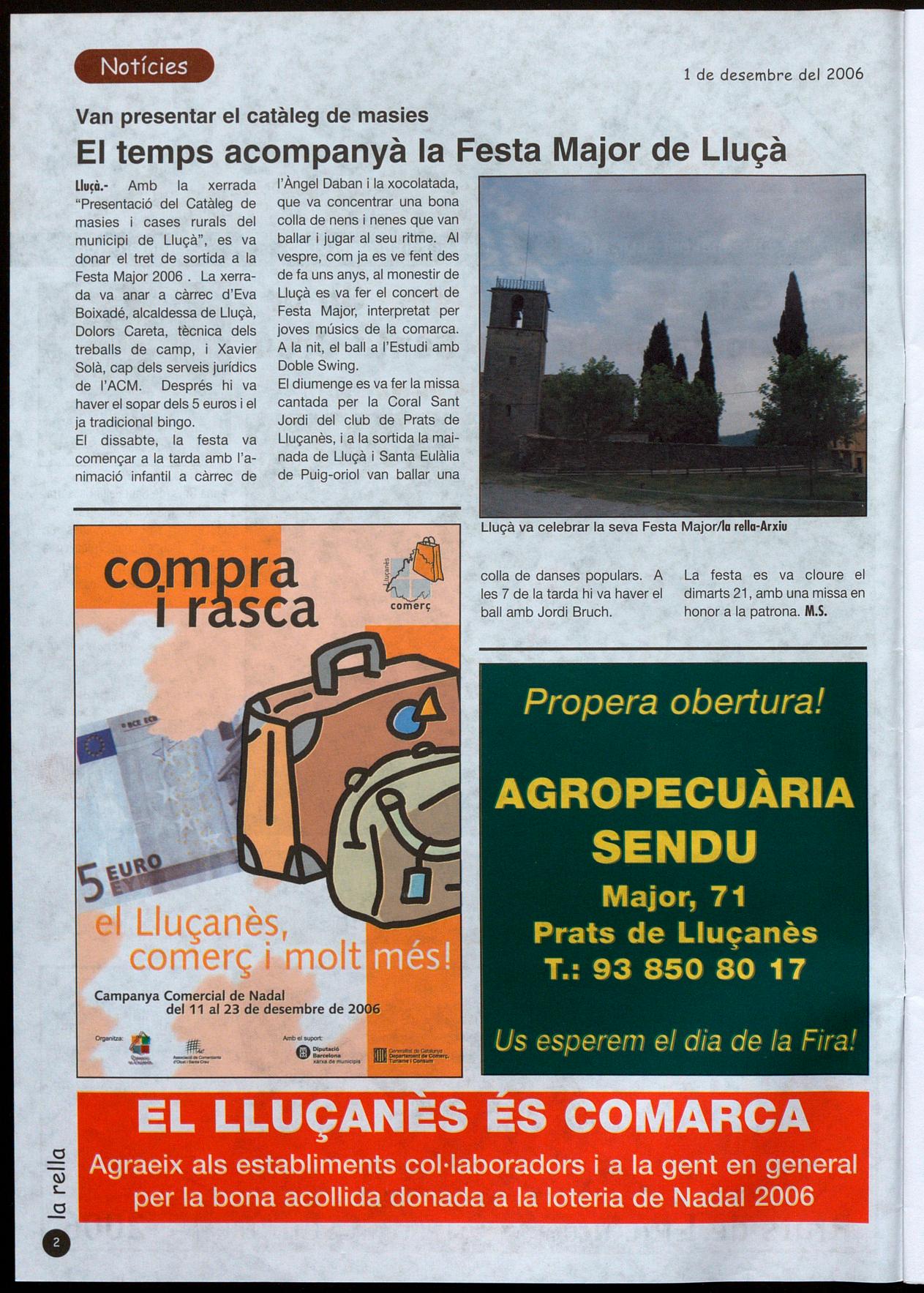Lluçà.- Amb la xerrada "Presentació del Catàleg de masies i cases rurals del municipi de Lluçà", es va donar el tret de sortida a la Festa Major 2006. La xerrada va anar a càrrec d'Eva Boixadé, alcaldessa de Lluçà, Dolors Careta, tècnica dels treballs de camp, i Xavier Solà, cap dels serveis jurídics de I'ACM. Després hi va haver el sopar dels 5 euros i el ja tradicional bingo. El dissabte, la festa va començar a la tarda amb l'animació infantil a càrrec de