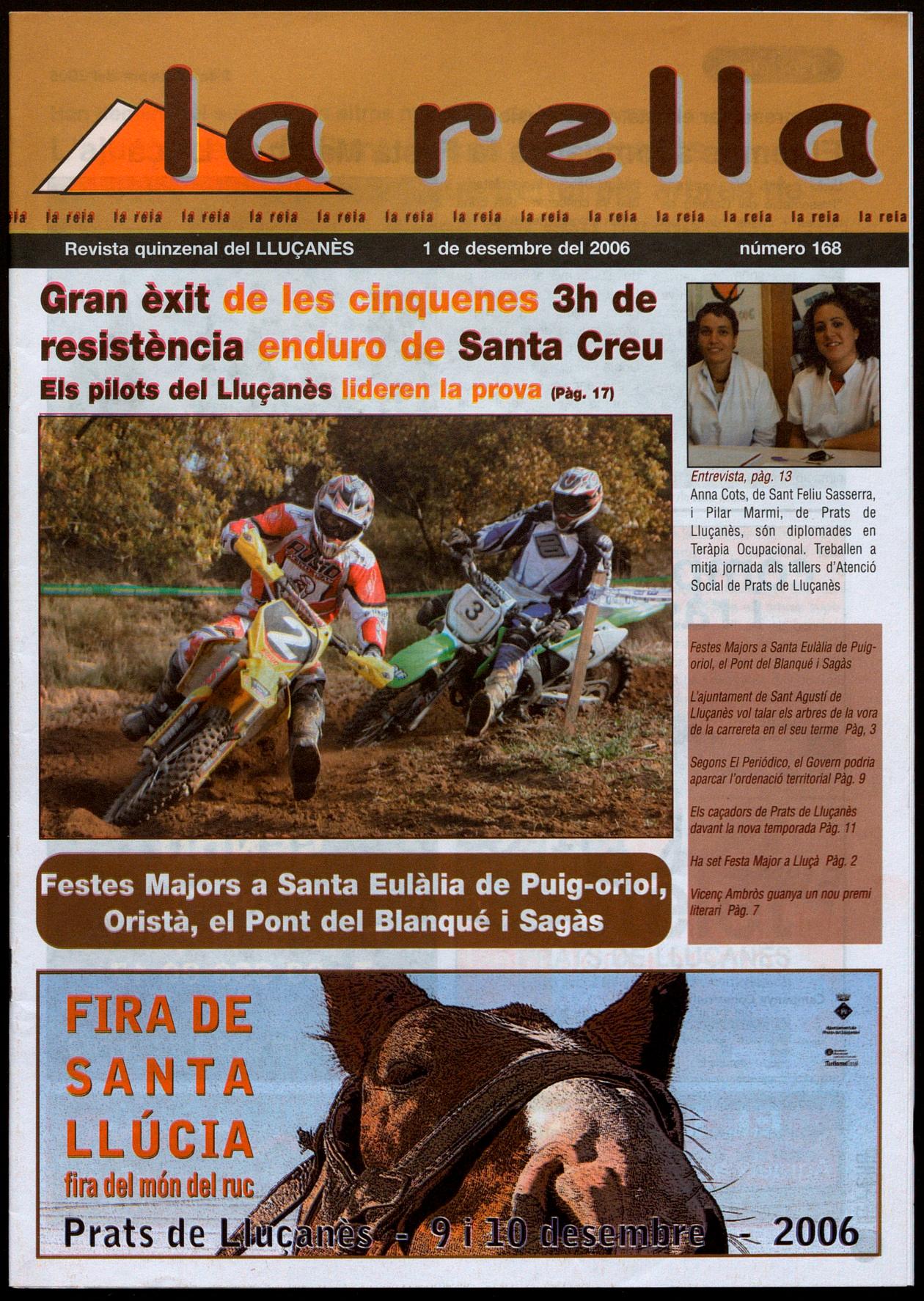 En una prova que s'està convertint en obligada en el calendari català de resistència d'enduro, molta gent del Lluçanès dels voltants van acostar-se als camps que envolten les antigues escoles -actual local social seu del Consorci-, cedits pel veí Ramon Bach, per veure l'espectacle que oferien els. setanta-un equips inscrits. Santa Creu va multiplicar el nombre de gent, cotxes motos, durant la jornada que finalitzà amb una valoració de més que un autèntic èxit. I l'any vinent, tornar-hi! I.Peraire