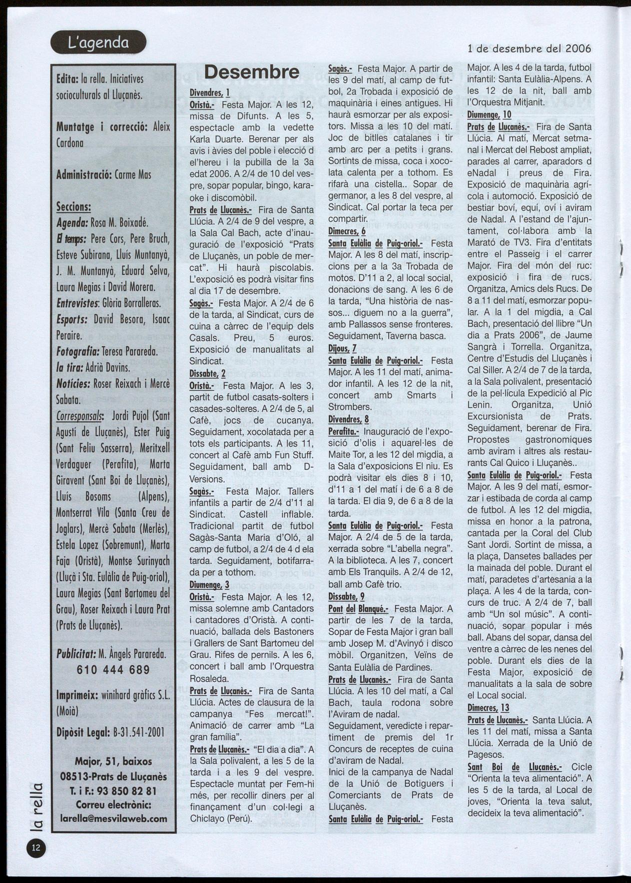 l'Àngel Daban i la xocolatada, que va concentrar una bona colla de nens nenes que van ballar jugar al seu ritme. AI vespre, com ja es ve fent des de fa uns anys, al monestir de Lluçà es va fer el concert de Festa Major, interpretat per joves músics de la comarca.