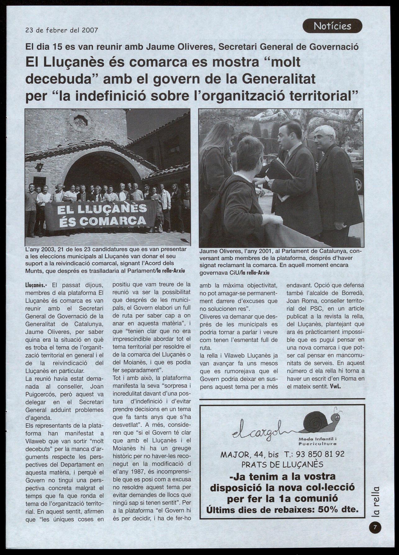 ecepció a la plataforma El Lluçanès es comarca respecte de la voluntat del govern per reconèixer la comarca àg.7
