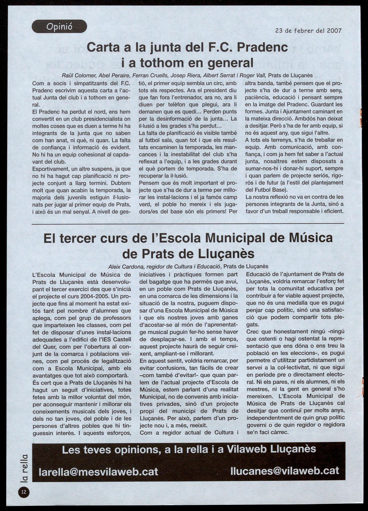 Poseu els vostres anuncis telefonant al 93 850 82 81 o enviant un correu a larella@mesvilaweb.cat