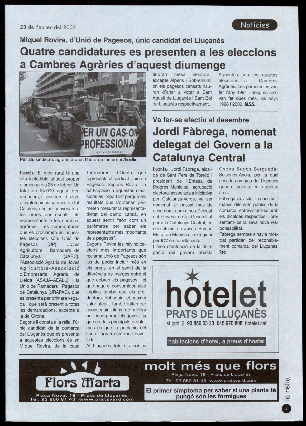 El dia 25 de febrer, eleccions a ambres agràries �g, 3