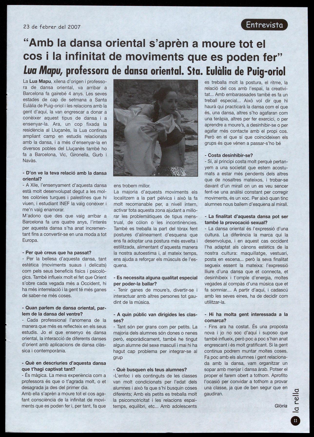 Lua Mapu, professora de dansa oriental, de Santa Eulàlia de Puigoriol.