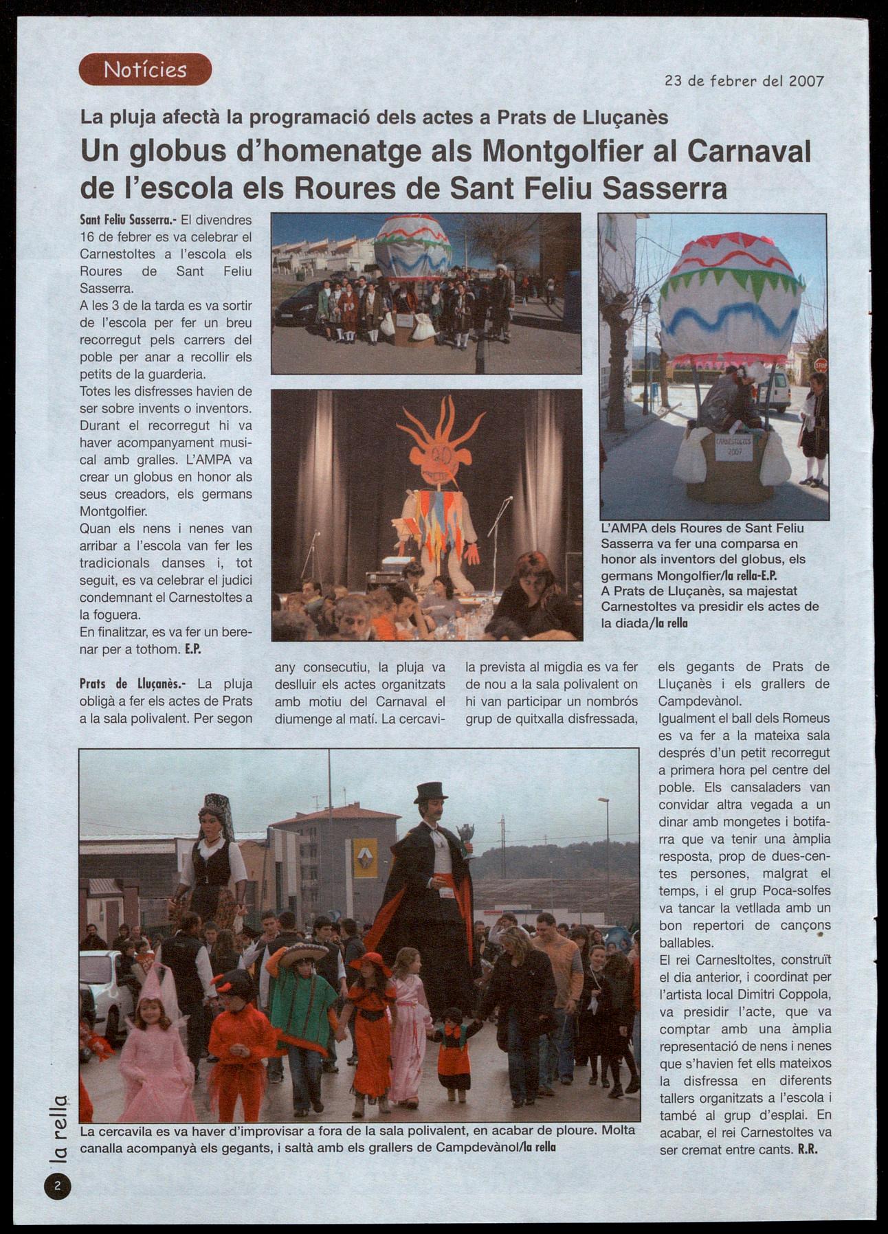 Sasserra va fer una comparsa en honor als inventors del globus, els germans Mongolfier/la rella-E.P.