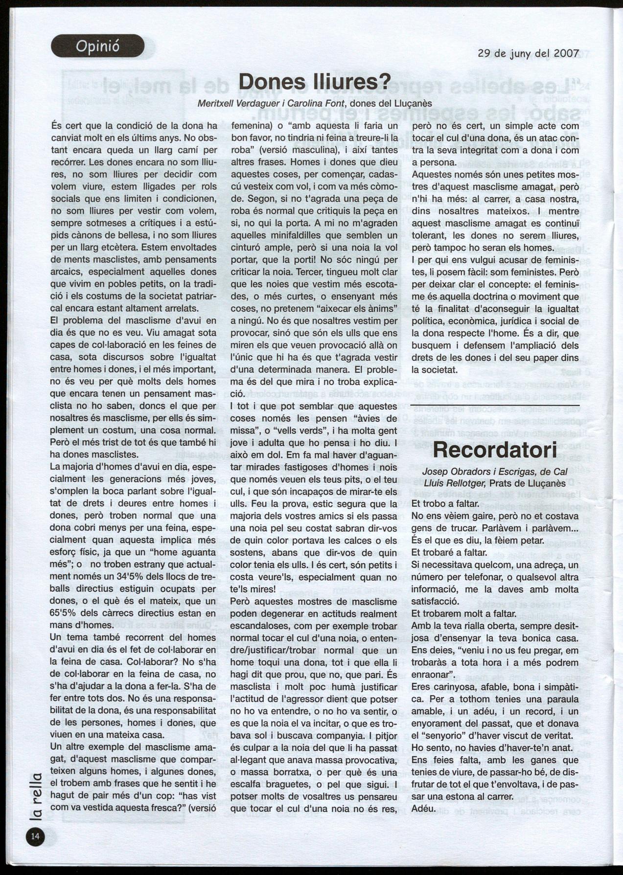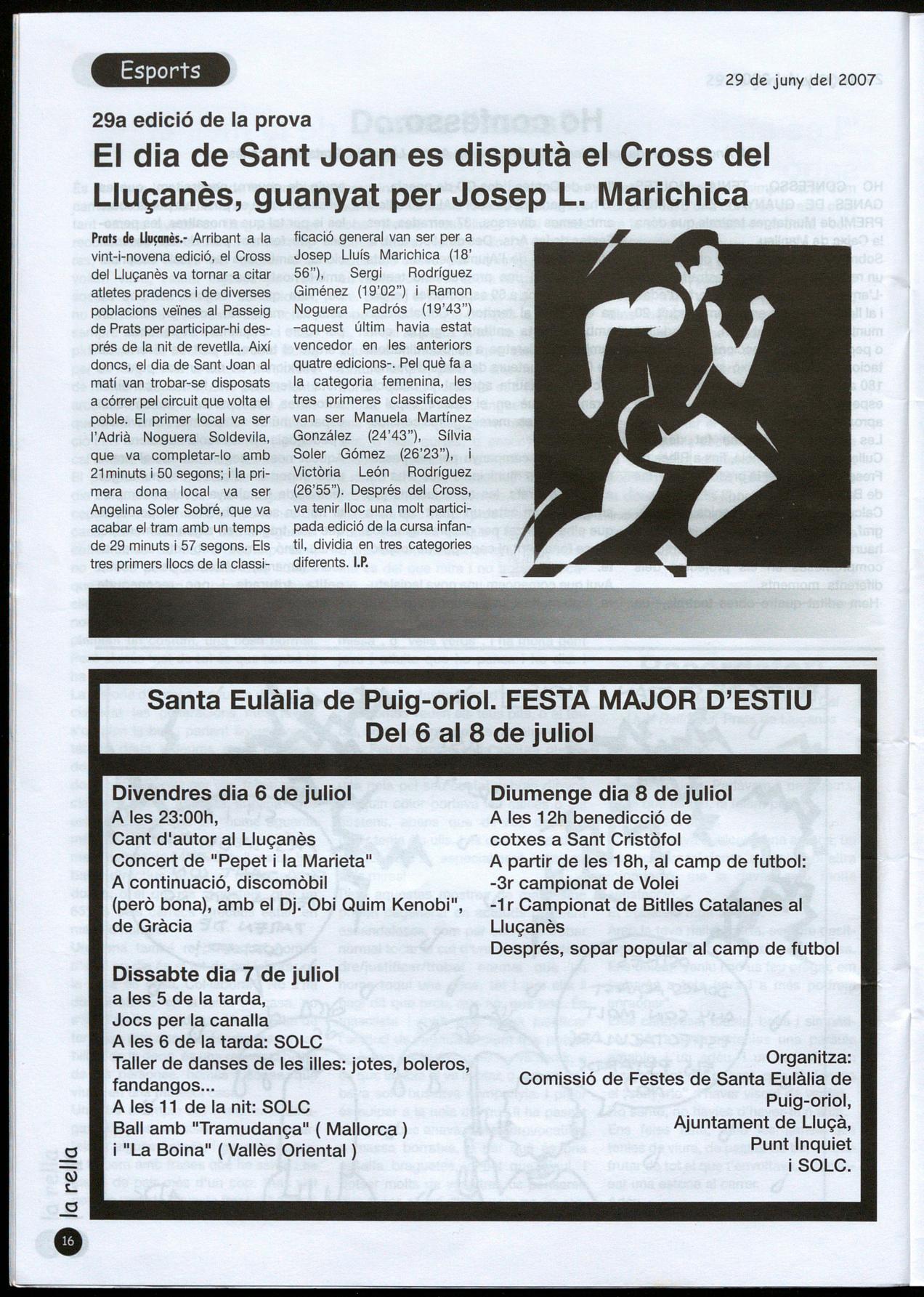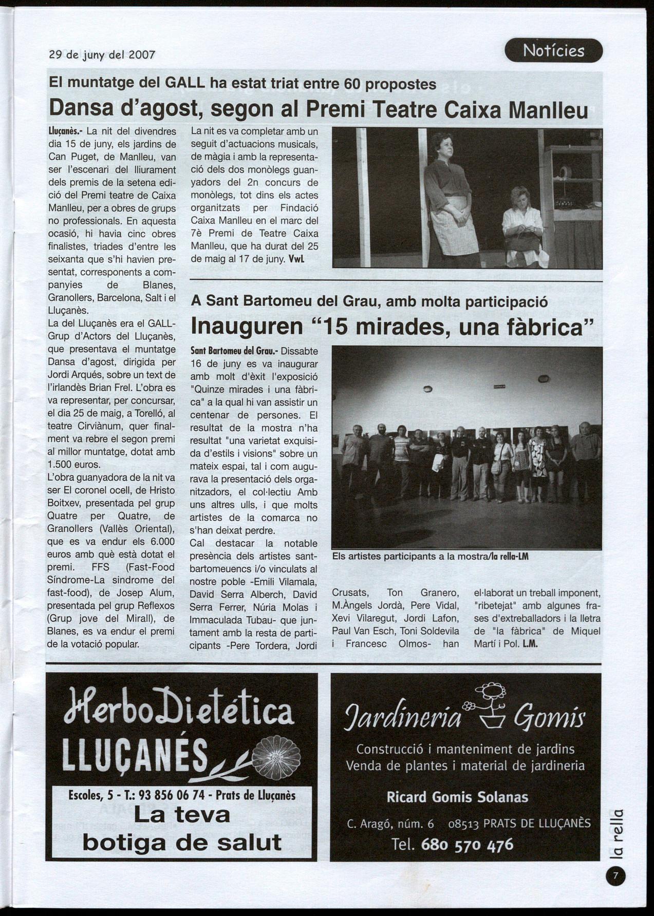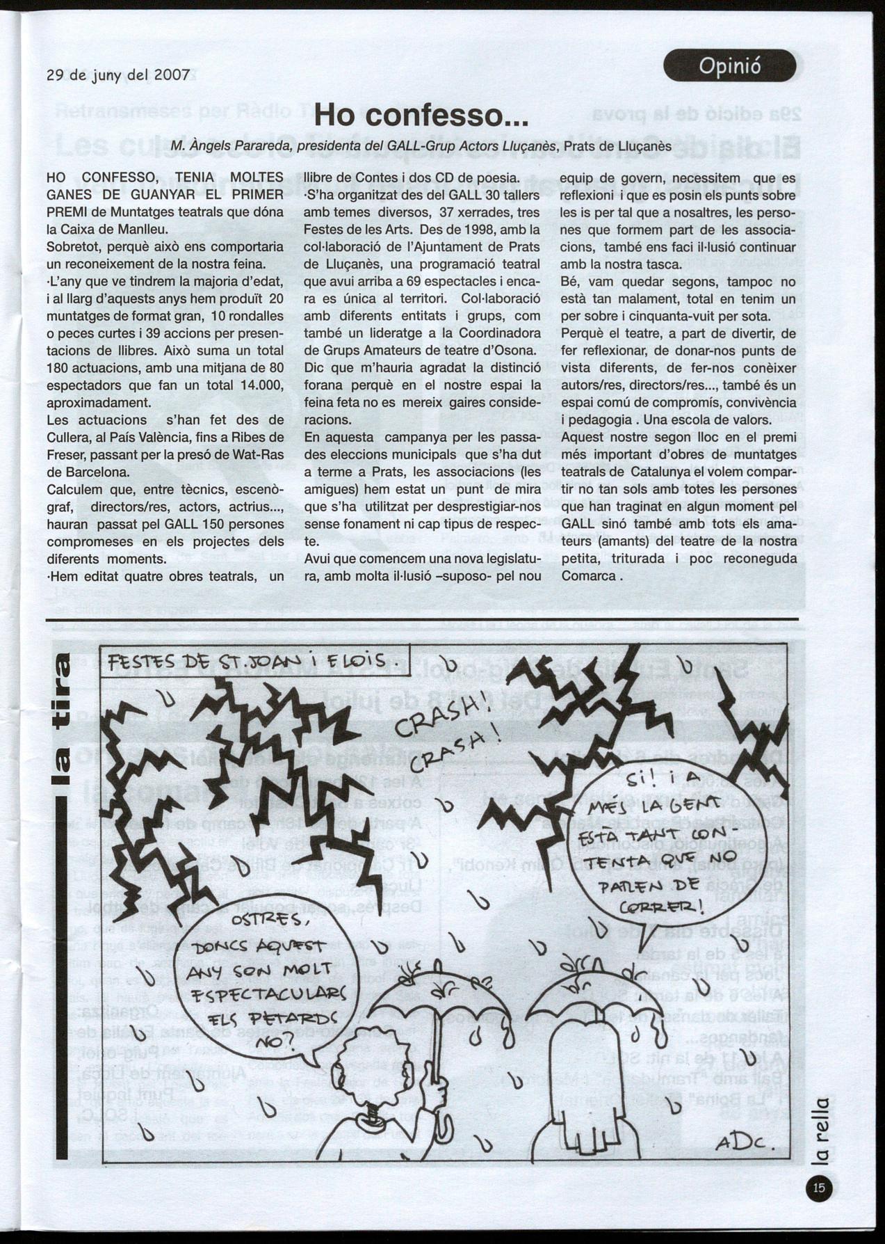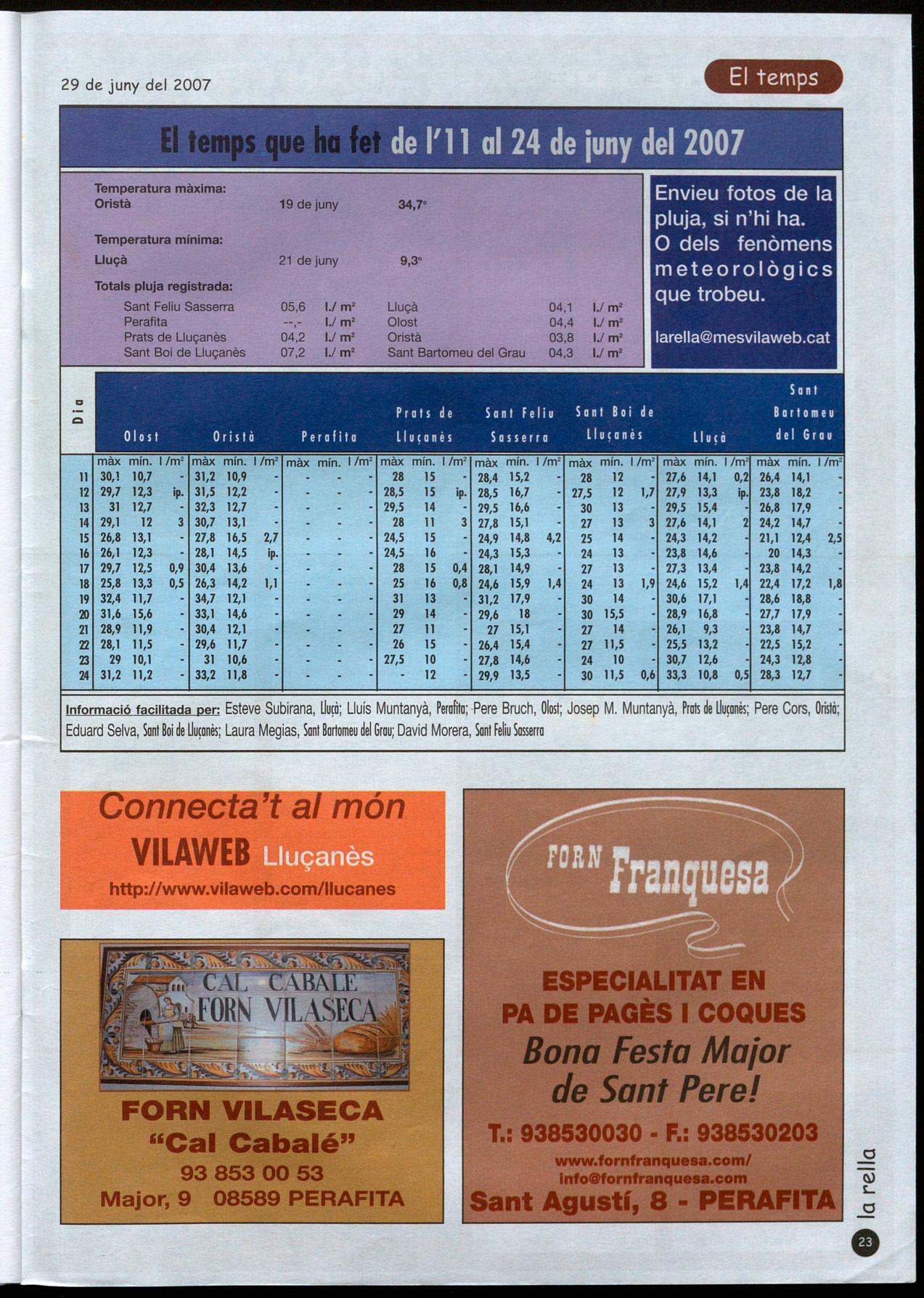 Prats de Llu�anès.- El grup de CiU ha repartit el número 25 del seu butlletí informatiu, Parlem-ne, corresponent al juny del 2007. En aquest número, comencen agraint el suport els vots rebuts, continuen amb un seguit d'imatges del ple de presa de possessió acaben anunciant algunes de les característiques del nou mandat i de la distribució de carteres, a més de lamentar que no s'hagués aconseguit el setè regidor. Finalment, desitgen bones Festes de Sant Joan els Elois a tothom. VwL