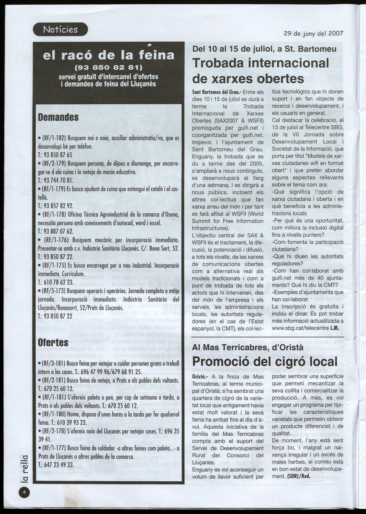 servei gratuït d'intercanvi d'ofertes i demandes de feina del Lluçanès