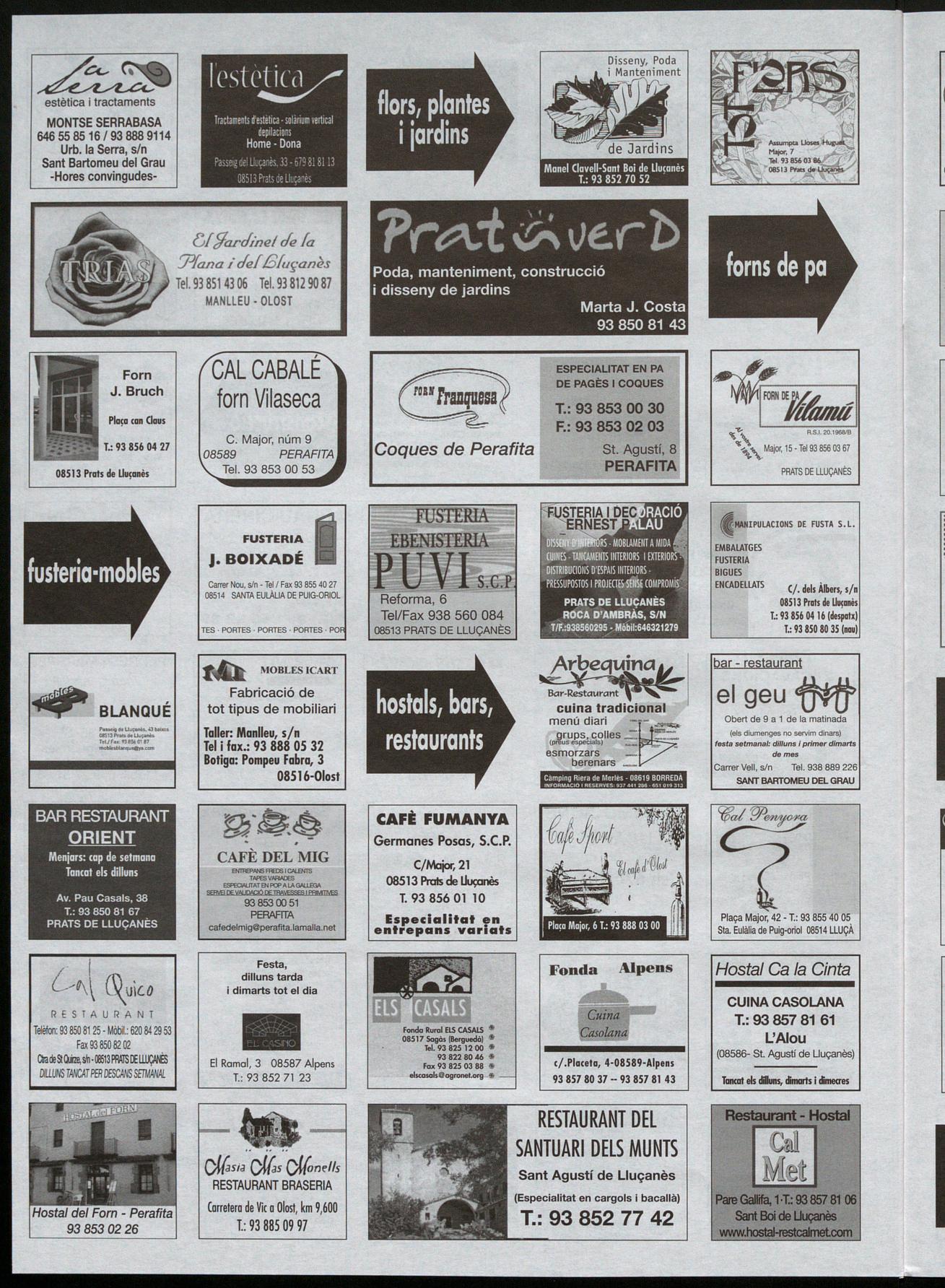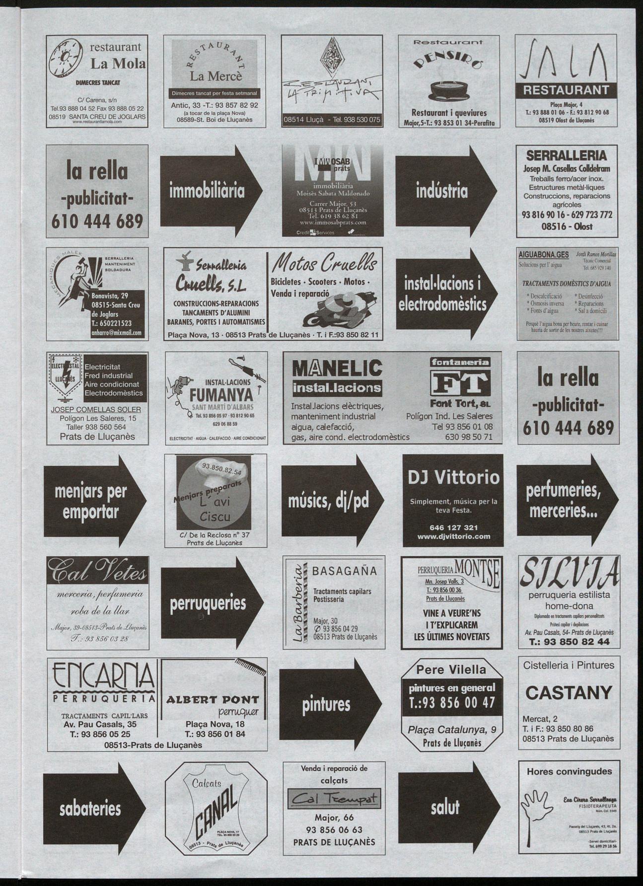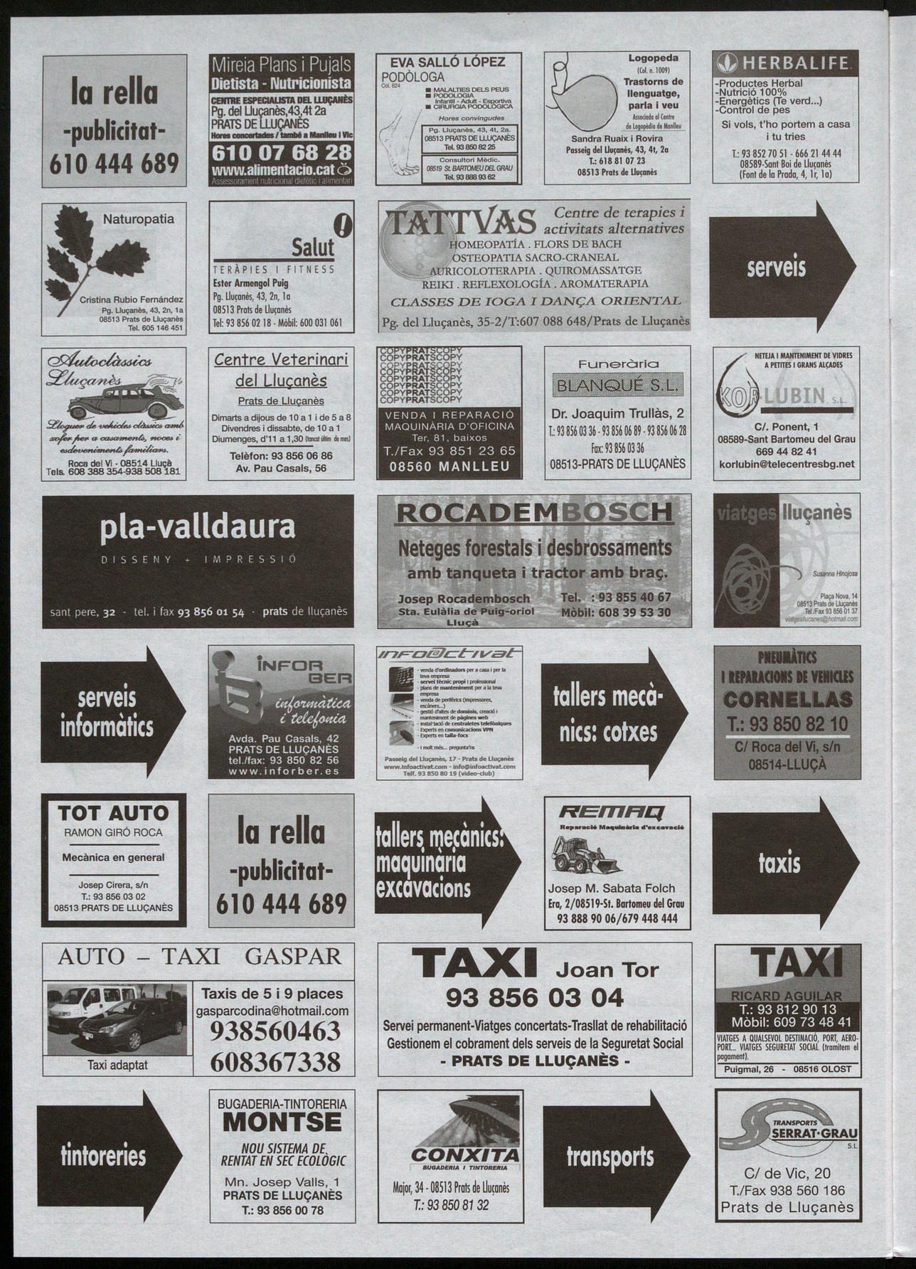 Av. Pau Casals, 46, 1 r 1.: 93 856 05 16-Fax: 93 856 00 65 08513 PRATS DE LLUÇANÈS Gravera BoneIIs 938250451 Merlès e A s TEL LOT s. A Gravera Uadamosa 938380987 Puig-reig