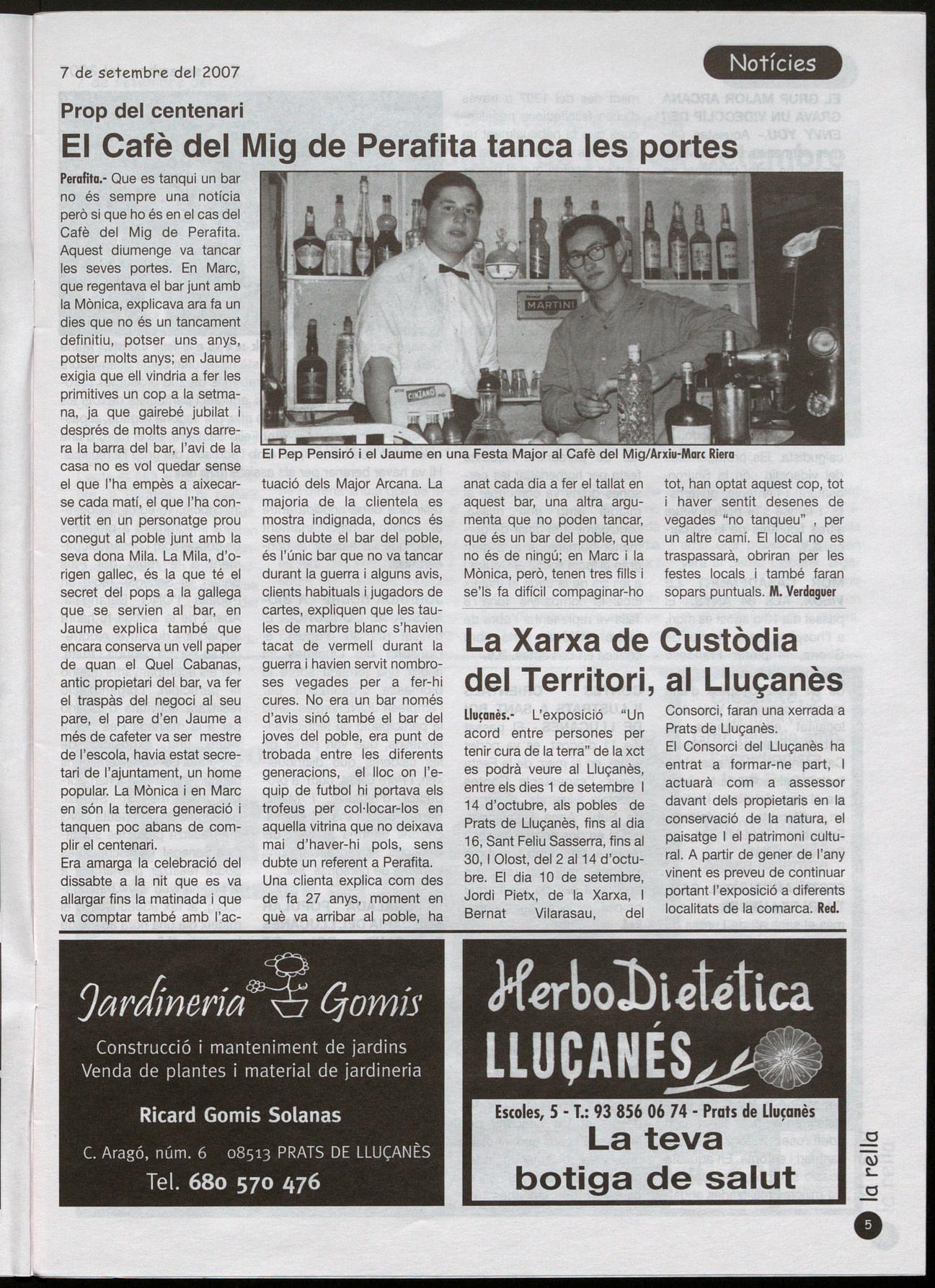 Perafita.- Que es tanqui un bar no és sempre una notícia però si que ho és en el cas del Cafè del Mig de Perafita.