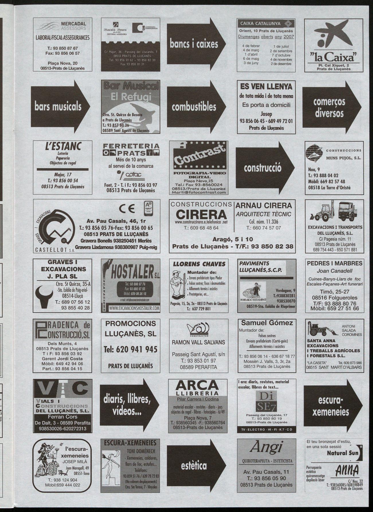 Plaça Nova, 20 08513-Prats de Uuçanès CAIXA CATALUNYA �Fr Orient, 10 Prats de Lluçanès Diumenges oberts llil)! 2007 4 de febrer 4 de març