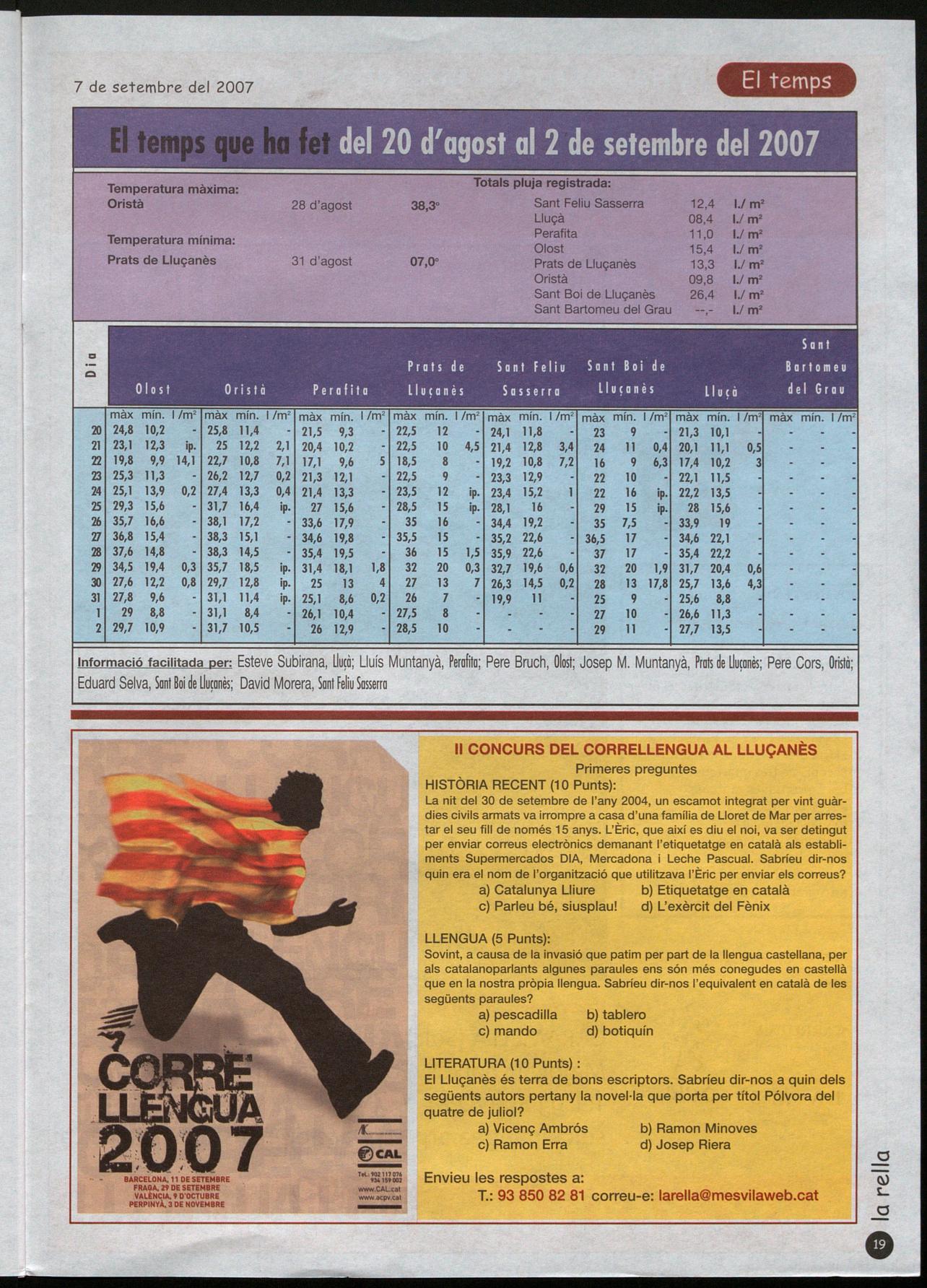 Informació facilitada per: Esteve Subirana, lIu¡à; Lluís Muntanyà, Perafita; Pere Bruch, Olost; Josep M. Muntanyà, Prats �e lIu¡anès; Pere Cors, Oristà; Eduard Selva, Sant Boi �e lIu¡anès; David Morera, Sant FeliuSasserra