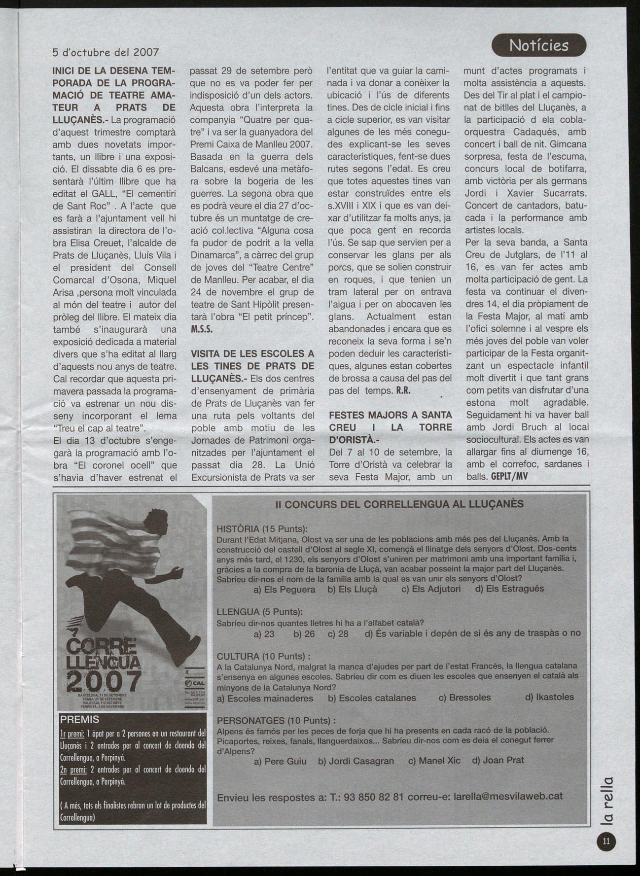 Major,71 Prats de Lluçanès T.: 93 850 80 17 Prats de Llu!anès