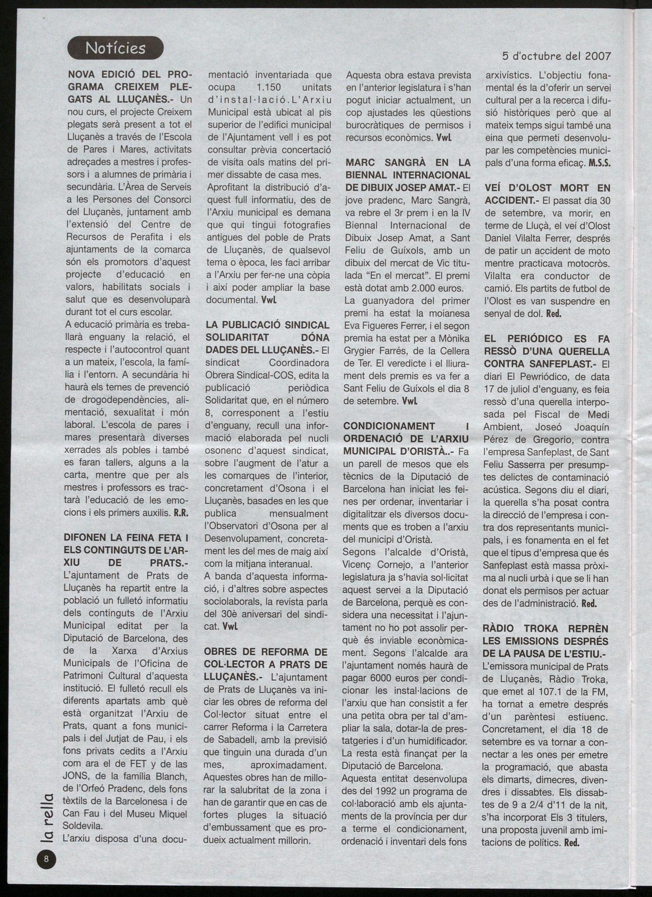 Prats de L1uçanès.- L'ajuntament de Prats de Lluçanès va celebrar una intensa sessió plenària, corresponent al primer trimestre d'aquesta legislatura. El primer tema important va ser el de l'aprovació de les Ordenances Fiscal els Preus Públics per a l'exercici 2008. CiU va defensar el compliment del seu programa electoral amb la desaparició del preu per als certificats expedits des de l'ajuntament -ERC havia posat el preu de 2 euros-, exceptuant els urbanístics.