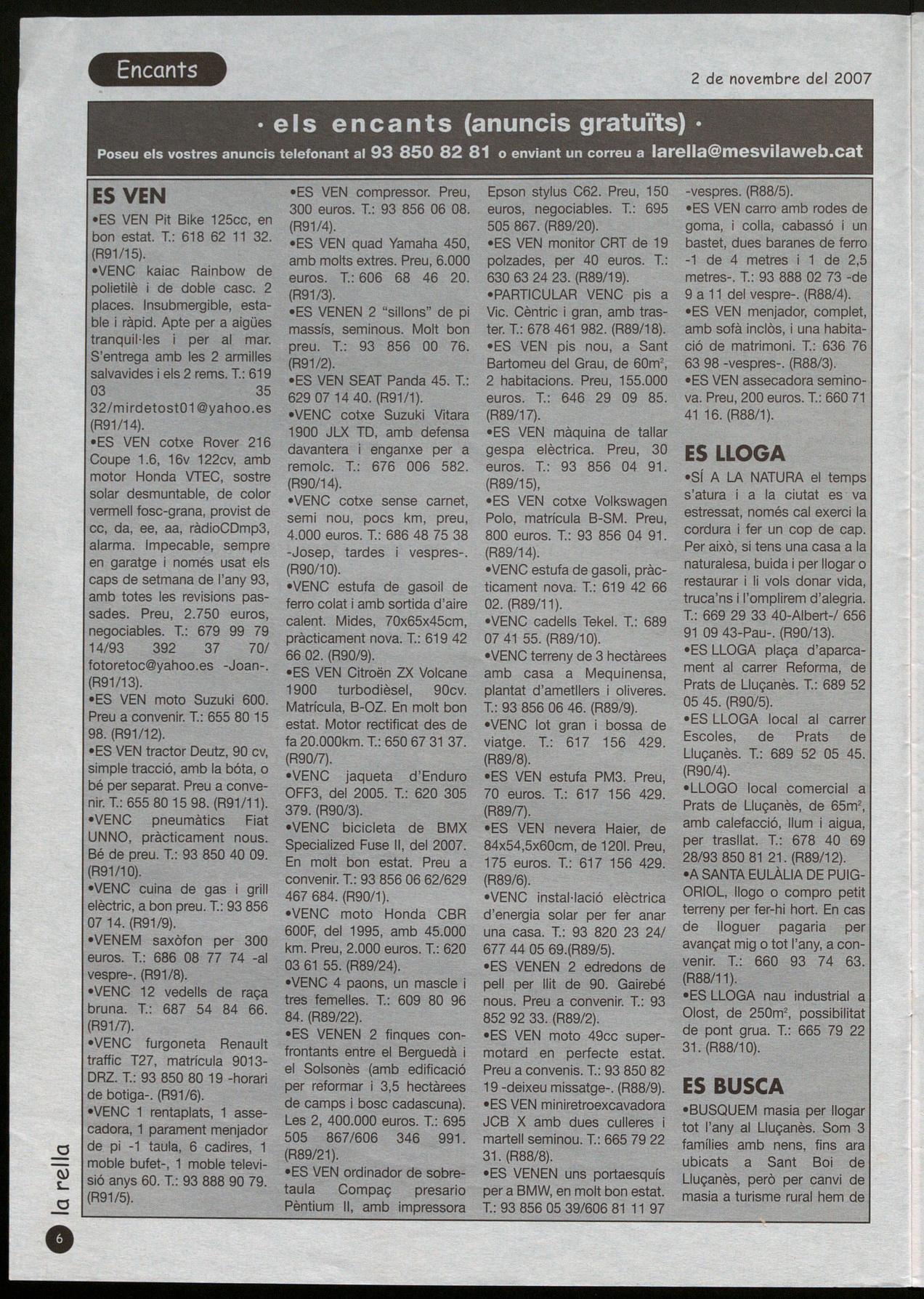 Poseu els vostres anuncis telefonant al 93 850 82 81 o enviant un correu a larella@mesvilaweb.cat