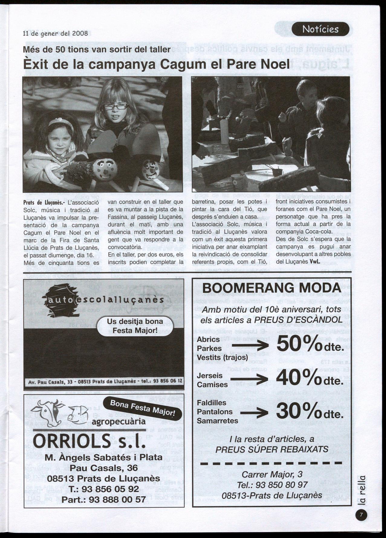 Prats de Llu�anès.- L'associació Solc, música i tradició al Lluçanès va impulsar la presentació de la campanya Cagum el Pare Noel en el marc de la Fira de Santa Llúcia de Prats de Lluçanès, el passat diumenge, dia 16. Més de cinquanta tions es