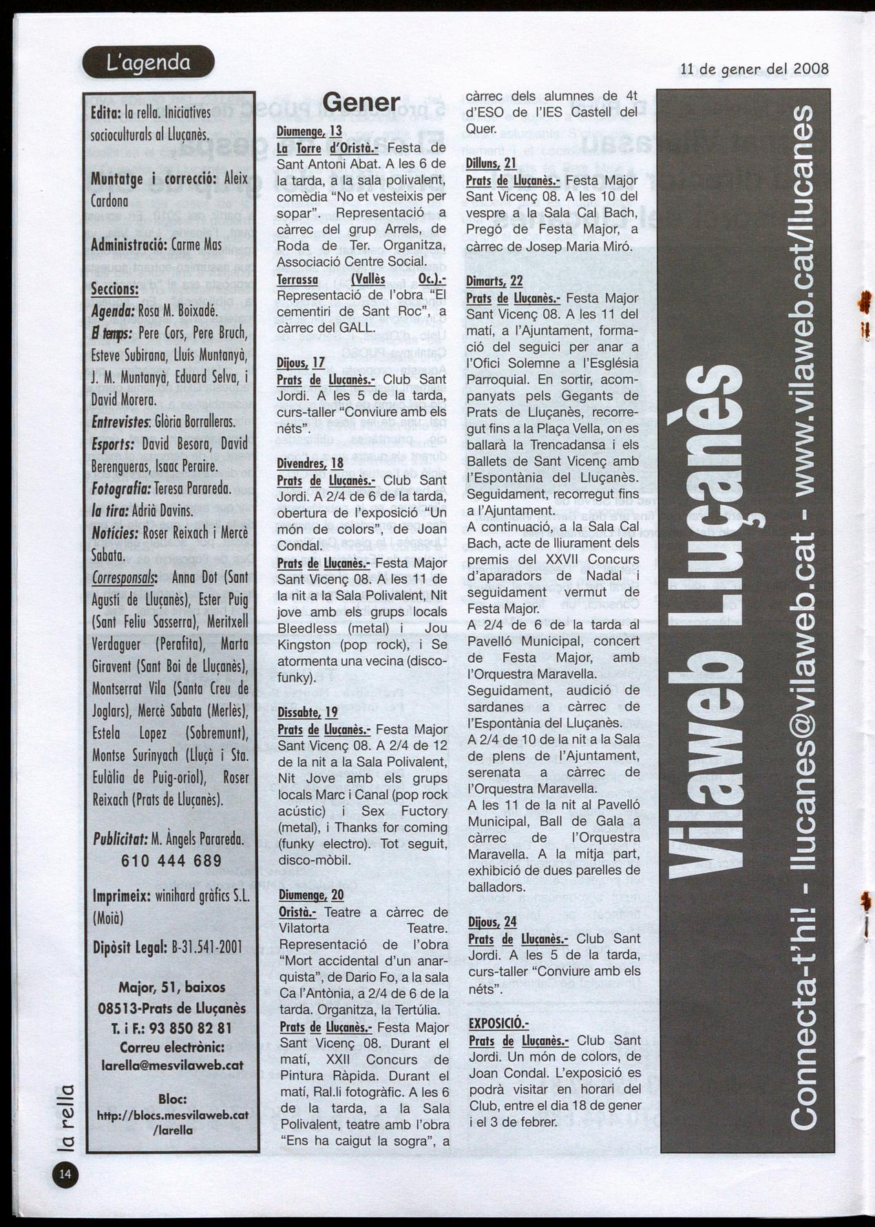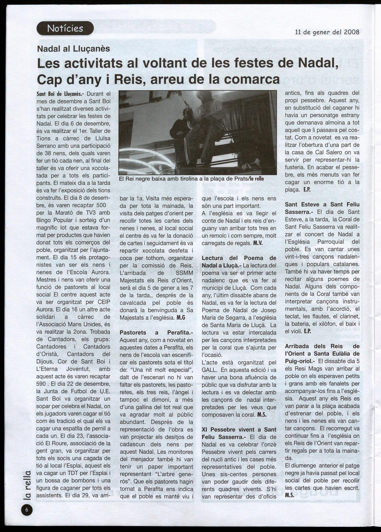 Lectura del Poema de Nadal a L1uçà.- La lectura del poema va ser el primer acte nadalenc que es va fer al municipi de Lluçà. Com cada any, l'últim dissabte abans de Nadal, es va fer la lectura del Poema de Nadal de Josep Maria de Segarra, a l'església de Santa Maria de Lluçà. La lectura va estar intercalada per les cançons interpretades per la coral que s'ajunta per l'ocasió.