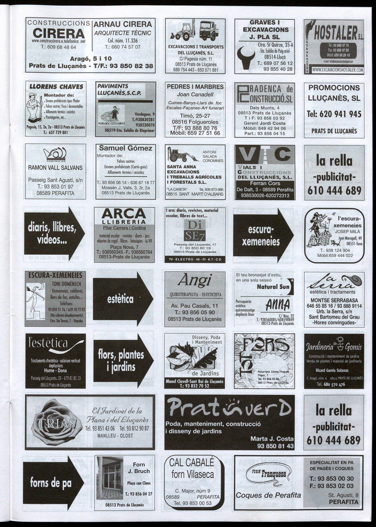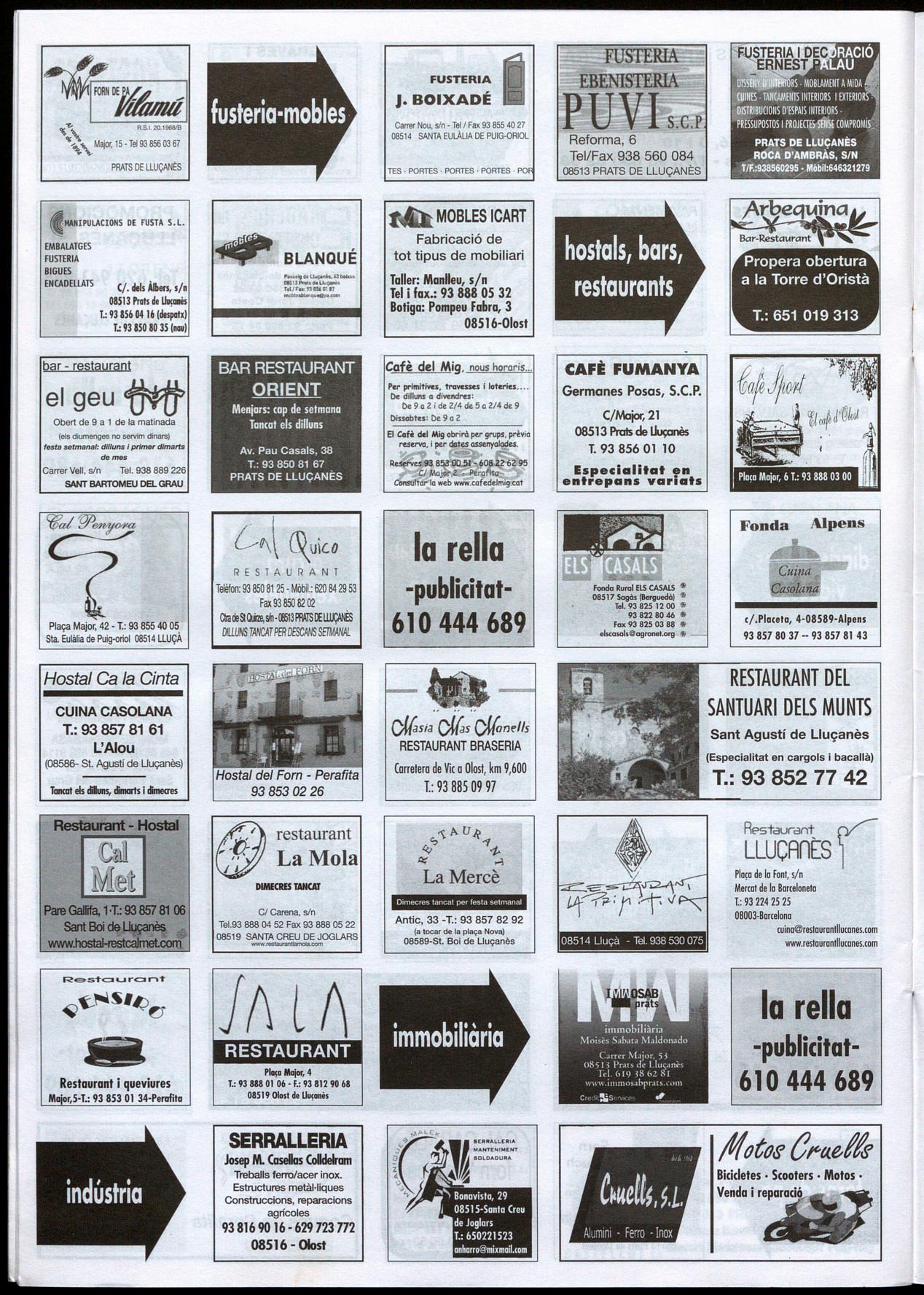 Us desitja bona Festa Major! ORRIOlS 5.1. M. Àngels Sabatés i Plata Pau Casals, 36 08513 Prats de Lluçanès T.: 938560592 Part.: 938880057