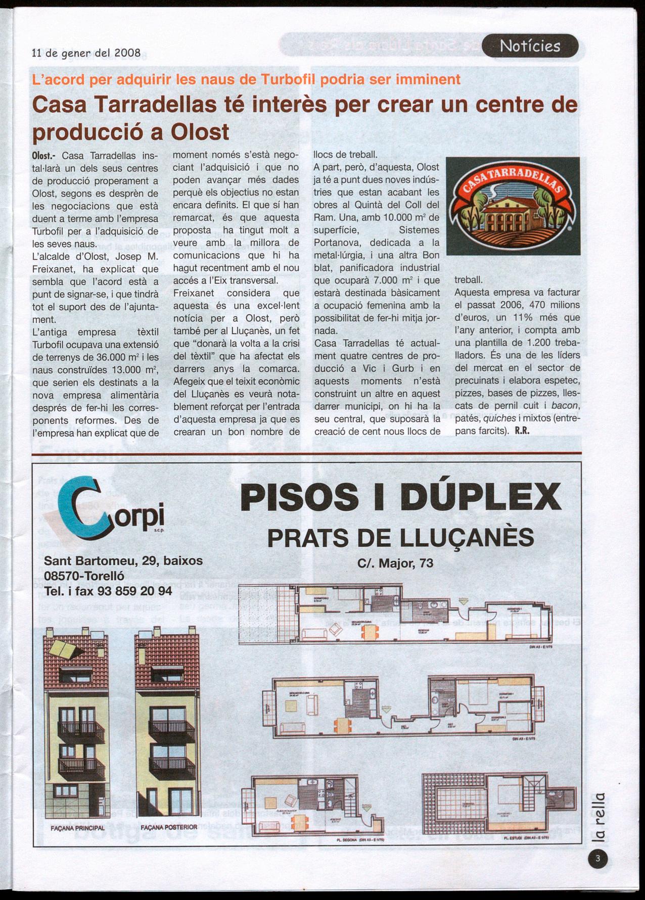 Olost.- Casa Tarradellas instal-larà un dels seus centres de producció properament a Olost, segons es desprèn de les negociacions que està duent a terme amb l'empresa Turbofil per a l'adquisició de les seves naus.