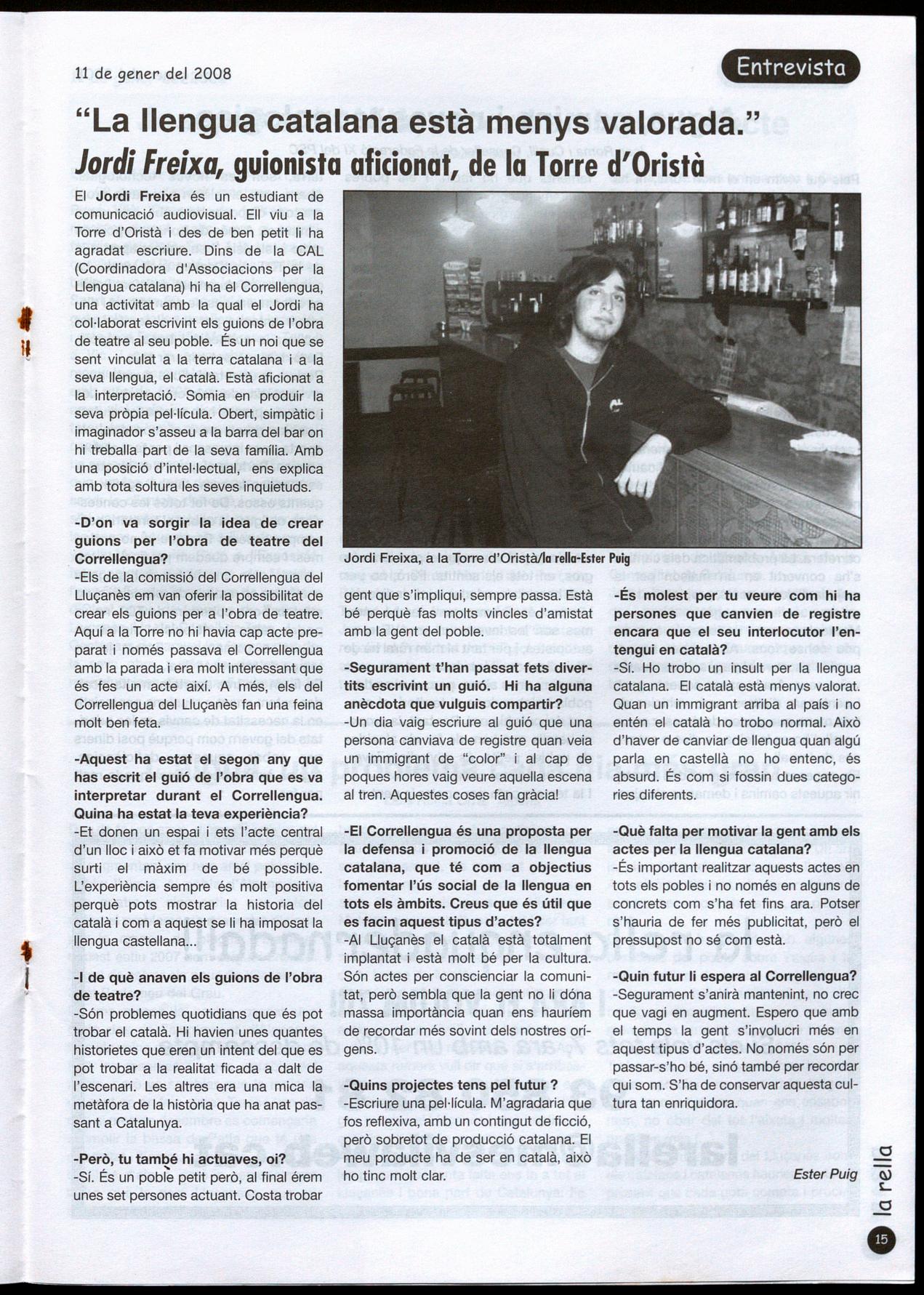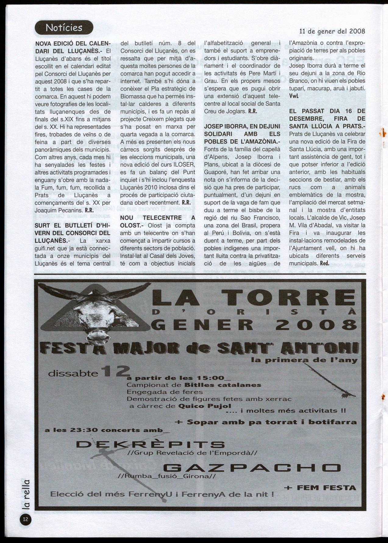 antics, fins als quadres del propi pessebre. Aquest any, en substitució del caganer hi havia un personatge estrany que demanava almoina a tot aquell que li passava pel costat. Com a novetat es va realitzar l'obertura d'una part de la casa de Cal Salero on va servir per representar-hi la fusteria. En acabar el pessebre, els més menuts van fer cagar un enorme tió a la plaça. E.P.