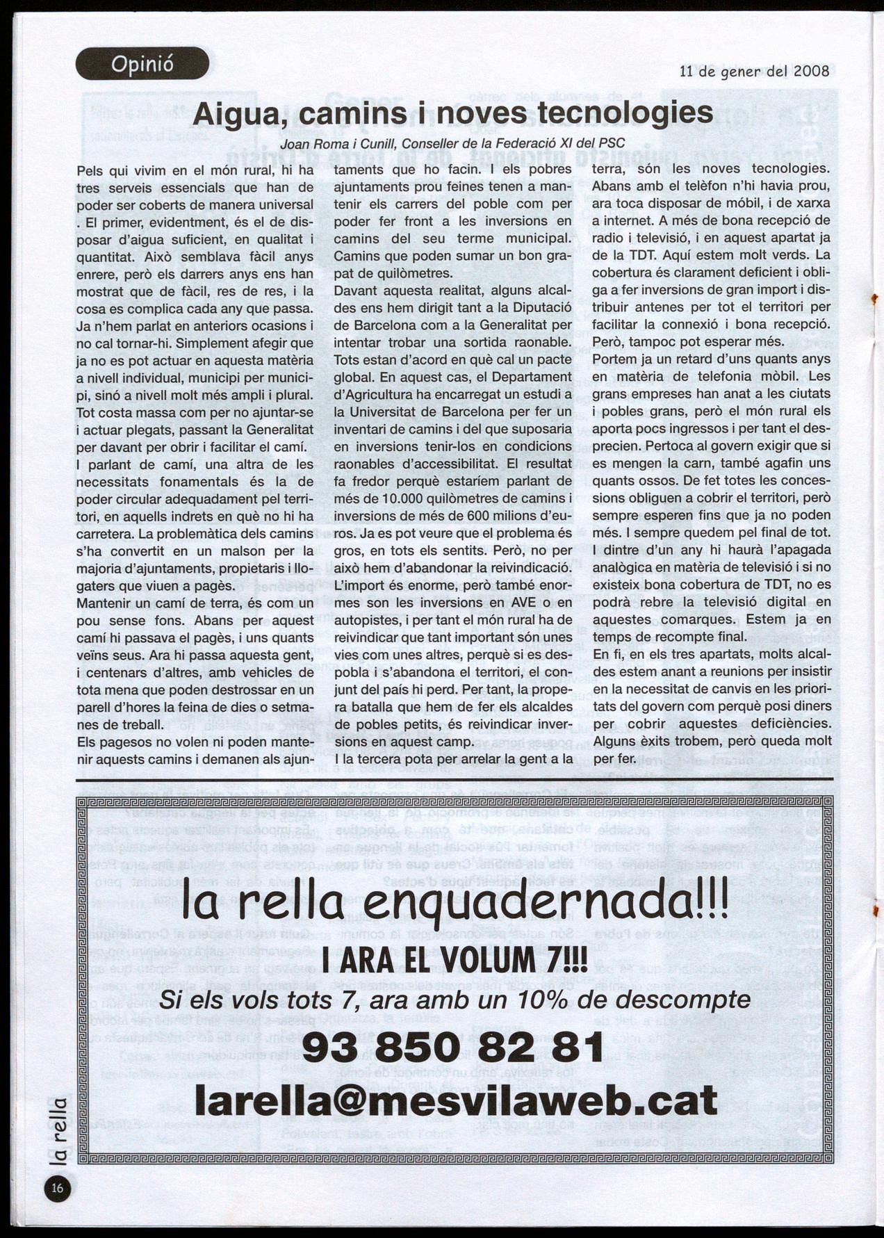 terra, són les noves tecnologies. Abans amb el telèfon n'hi havia prou, ara toca disposar de móbil, de xarxa a internet. A més de bona recepció de radio i televisió, i en aquest apartat ja de la TOT. Aquí estem molt verds. La cobertura és clarament deficient i obliga a fer inversions de gran import i distribuir antenes per tot el territori per facilitar la connexió i bona recepció. Però, tampoc pot esperar més.