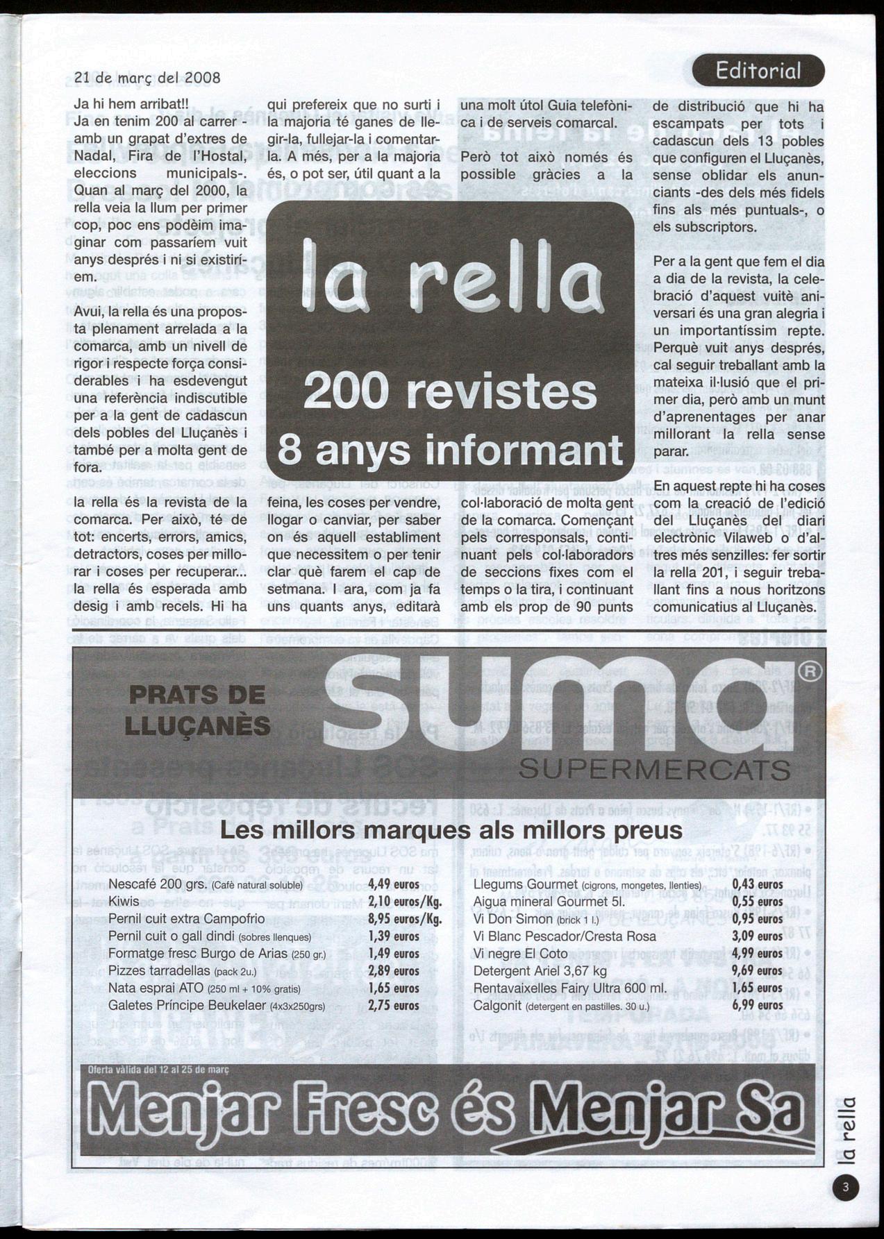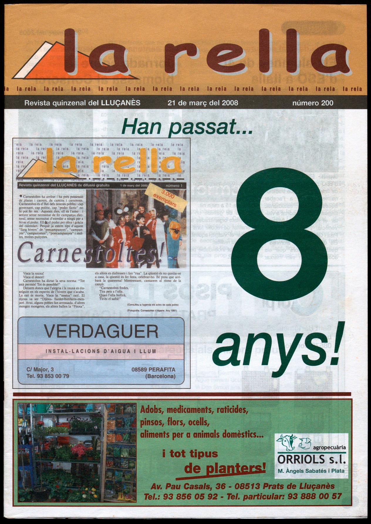 Ja hi hem arribat!! Ja en tenim 200 al carreramb un grapat d'extres de Nadal, Fira de l'Hostal, eleccions municipals-. Quan al març del 2000, la rella veia la llum per primer cop, poc ens podèim imaginar com passaríem vuit anys després ni si existiríem.