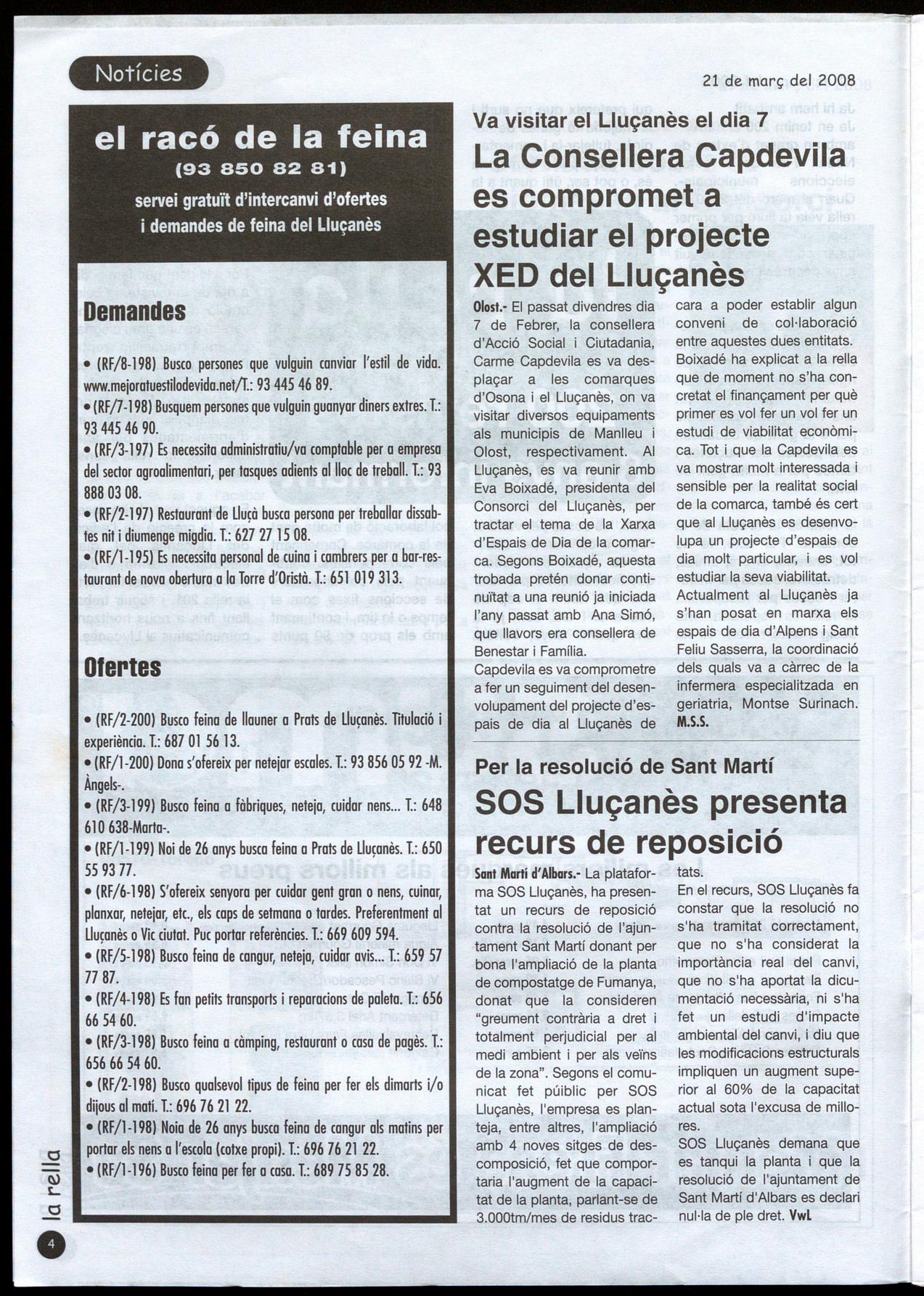 servei gratuït d'intercanvi d'ofertes i demandes de feina del Lluçanès