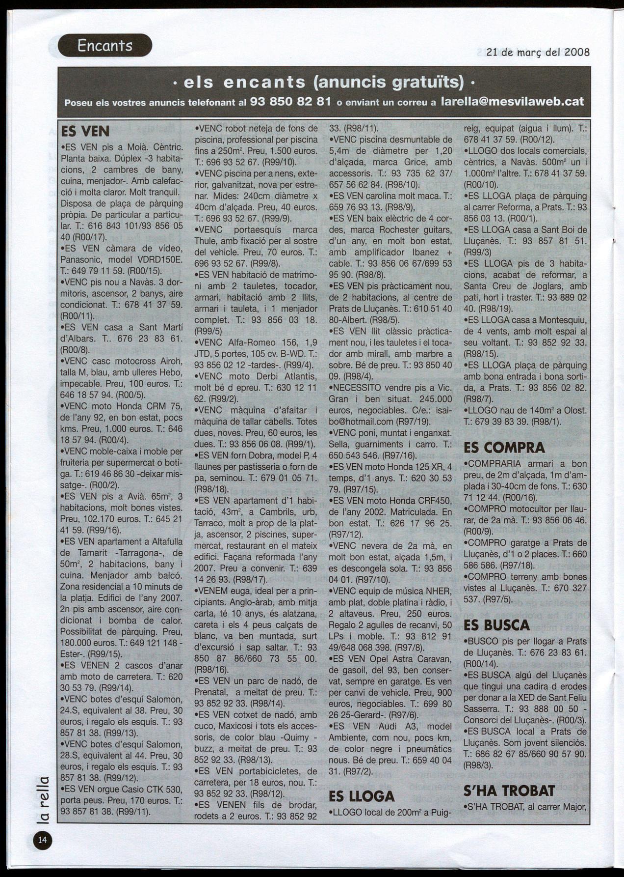 feina, les coses per vendre, llogar o canviar, per saber on és aquell establiment que necessitem o per tenir clar què farem el cap de setmana. I ara, com ja fa uns quants anys, editarà