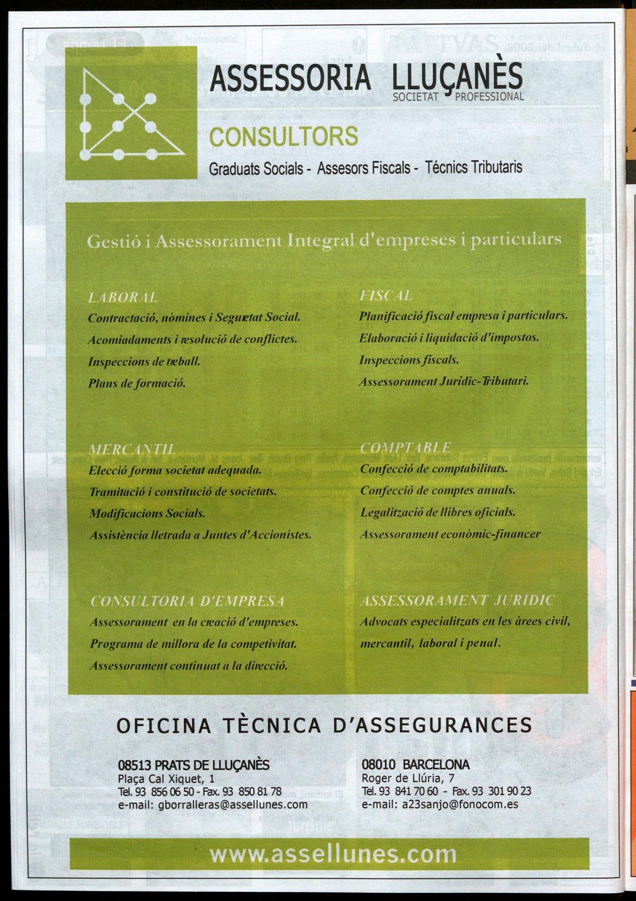 Industrial i Seguretat - Administració de finques - Automòbils Major, 36 * Passeig del Lluçanès, 7 * 08513 Prats de Lluçanès Tel. 93 856 01 62 * Fax 93 850 81 31