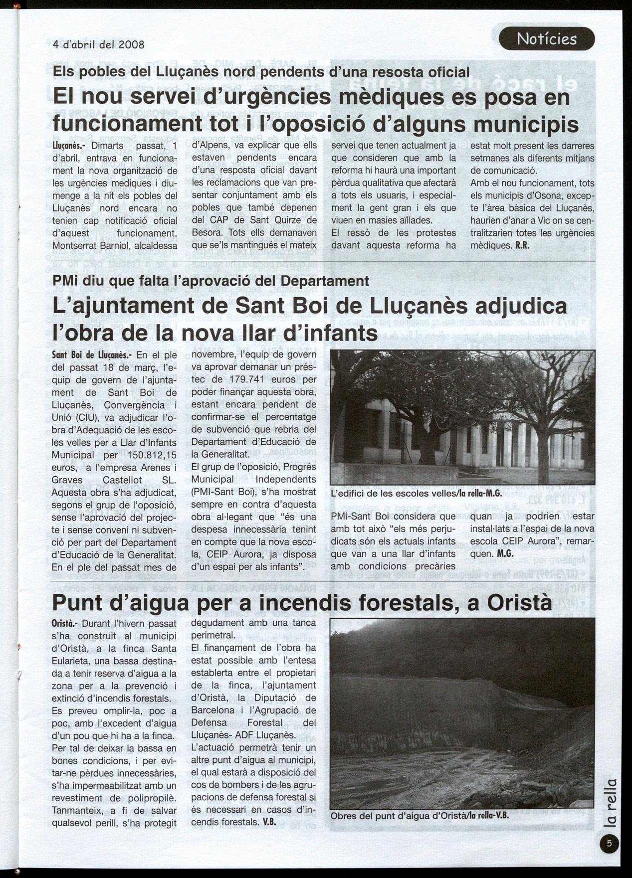 Lluçanès.- Dimarts passat, 1 d'abril, entrava en funcionament la nova organització de les urgències mediques diumenge a la nit els pobles del Lluçanès nord encara no tenien cap notificació oficial d'aquest funcionament.