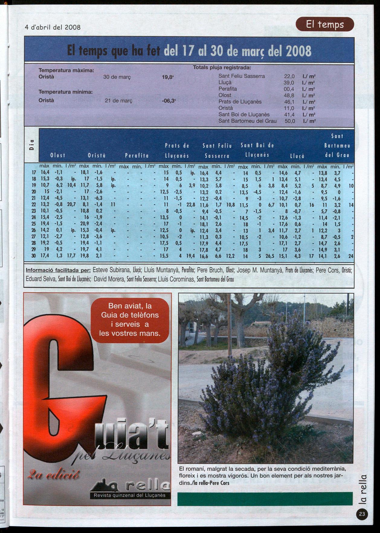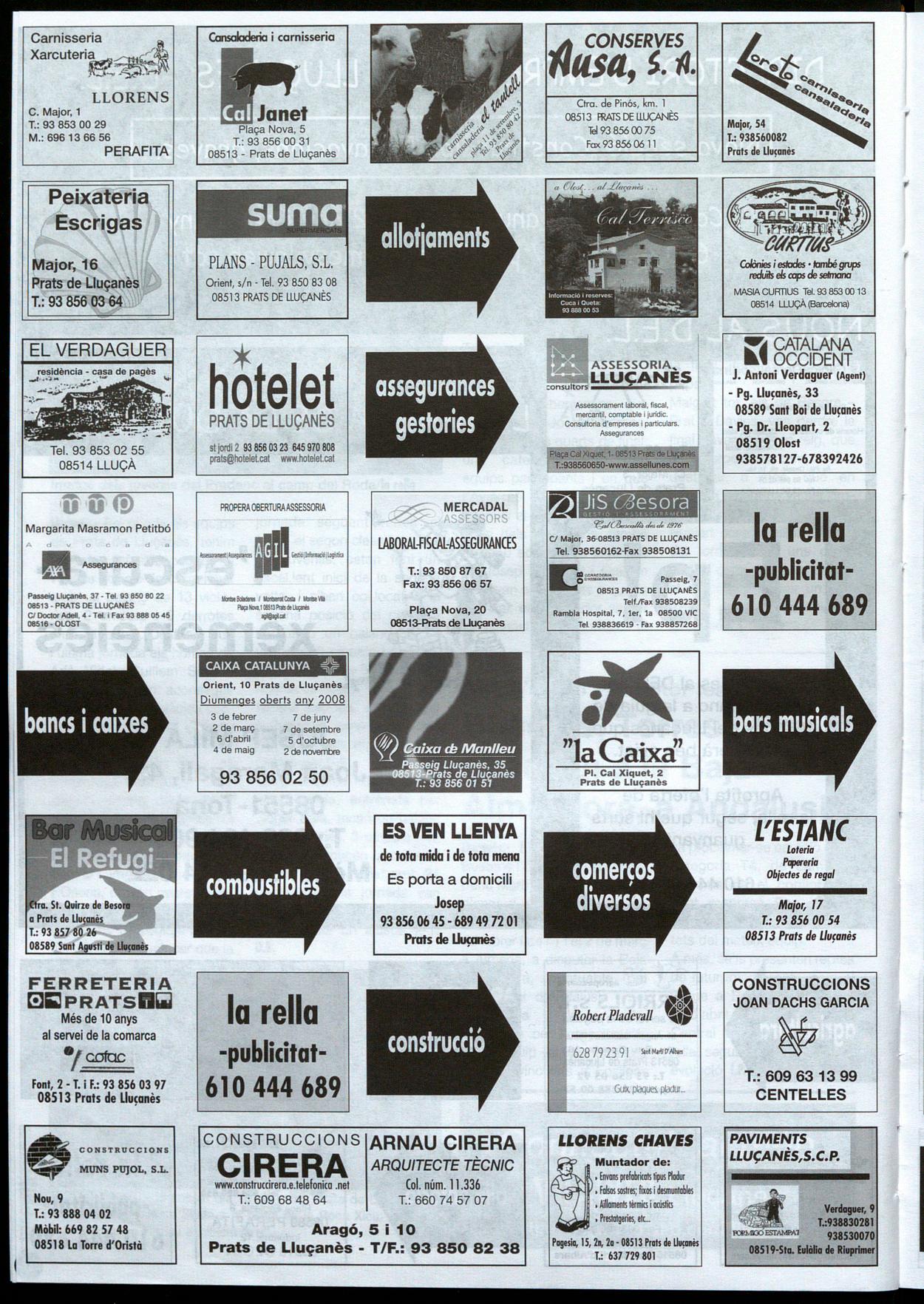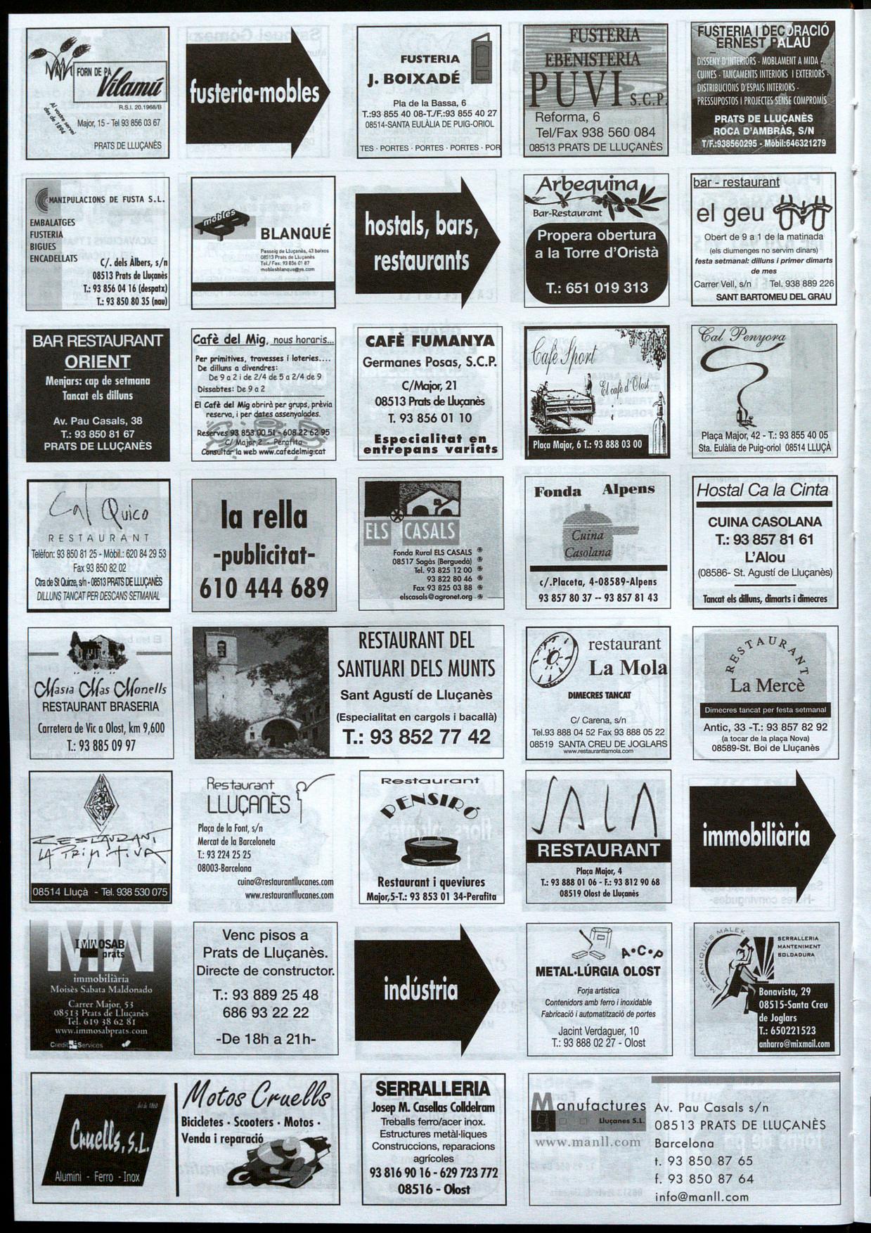 Informació facilitada per: Esteve Subirana, lIu¡à; Lluís Muntanyà, Perafita; Pere Bruch, Olost; Josep M. Muntanyà, Prats de lIu¡anès; Pere Cors, Oristà; Eduard Selva, SantBoi de lIu¡anès; David Morera, SantFeliu Sasserra; Lluís Corominas, Sant Bartomeu del Grau