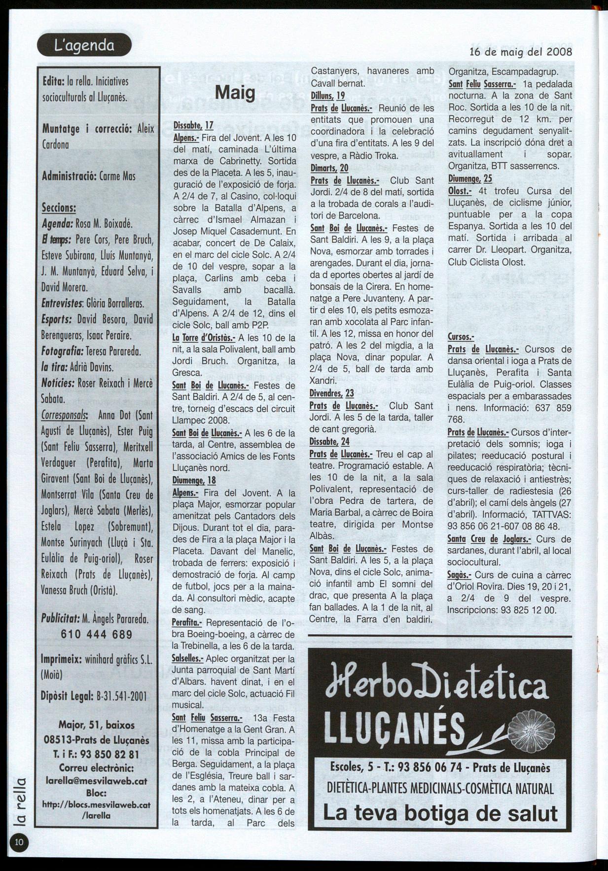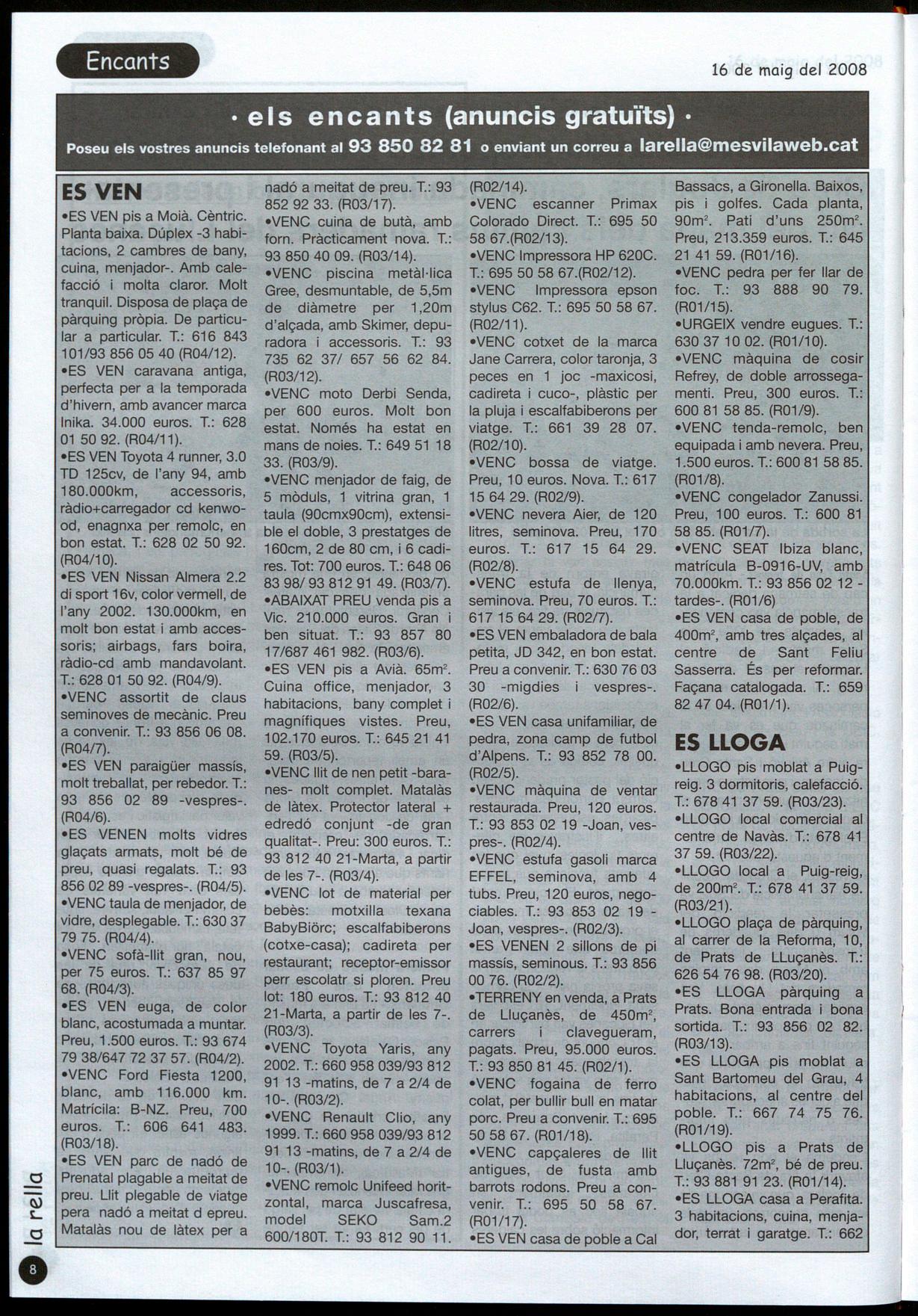 Poseu els vostres anuncis telefonant al 93 850 82 81 o enviant un correu a larella@mesvilaweb.cat
