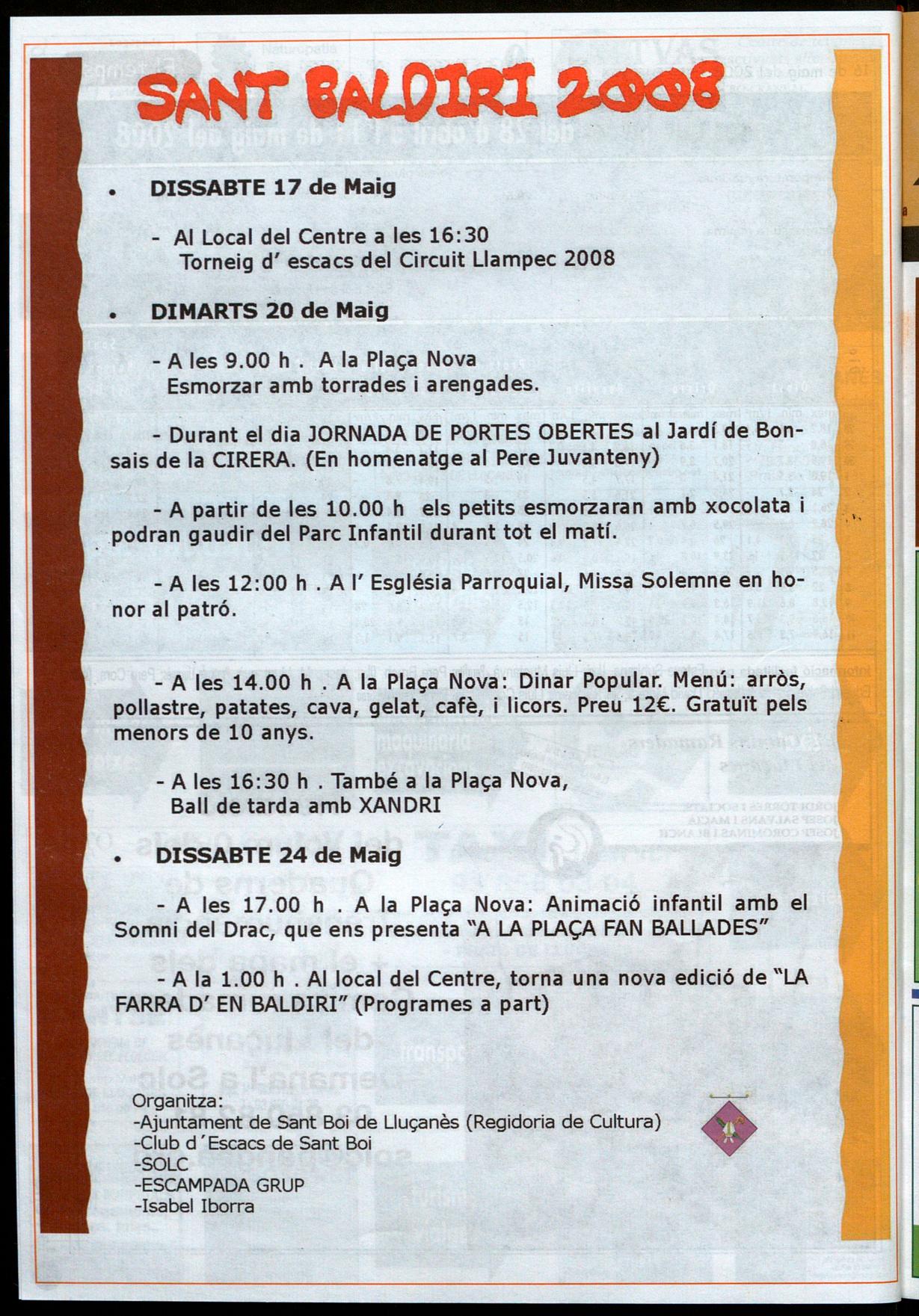 - A la 1.00 h Al local del Centre, torna una nova edició de "LA FARRA D' EN BALDIRI" (Programes a part)