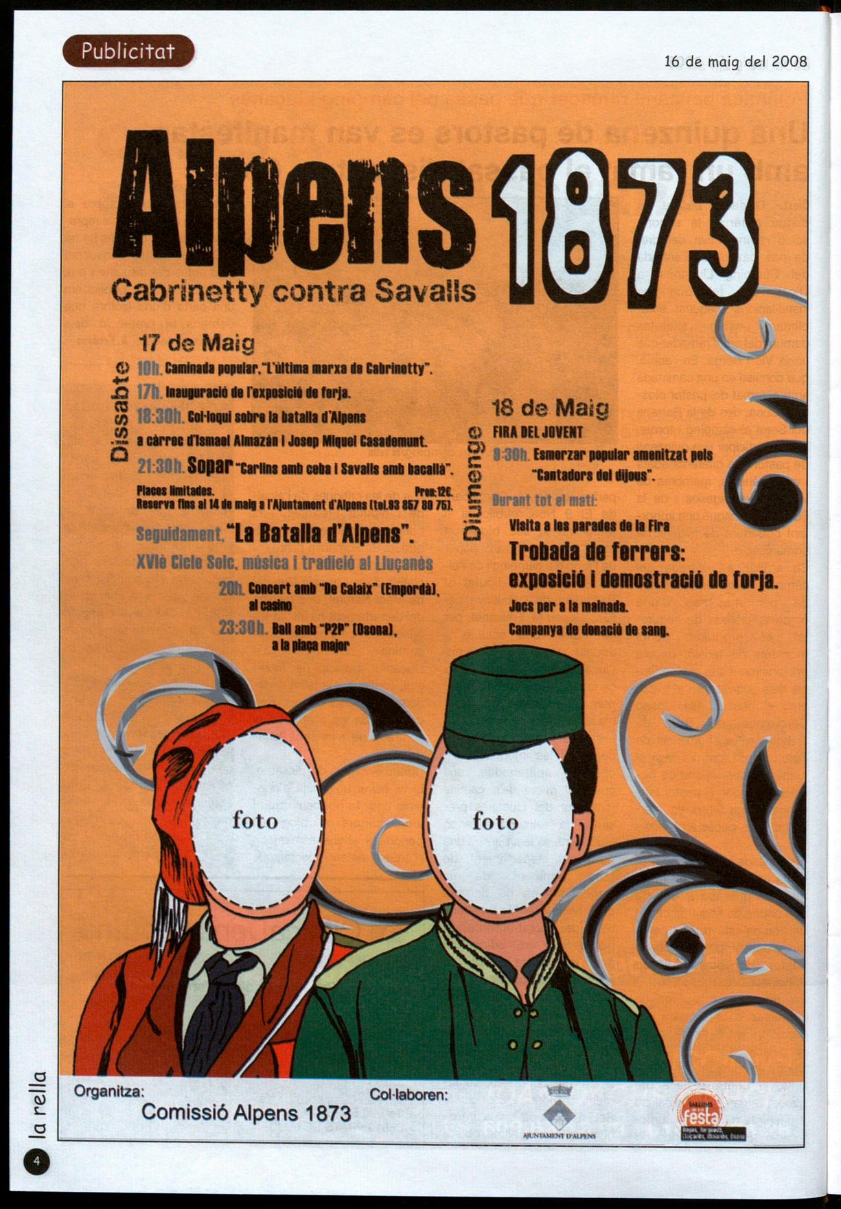 (RF/5-202) Monitor/o per a llor d'infants. Presentar instància i currículum a l'ajuntament d'Alpens, abans del 9 de maig del 2008. 1: 93 8578075.