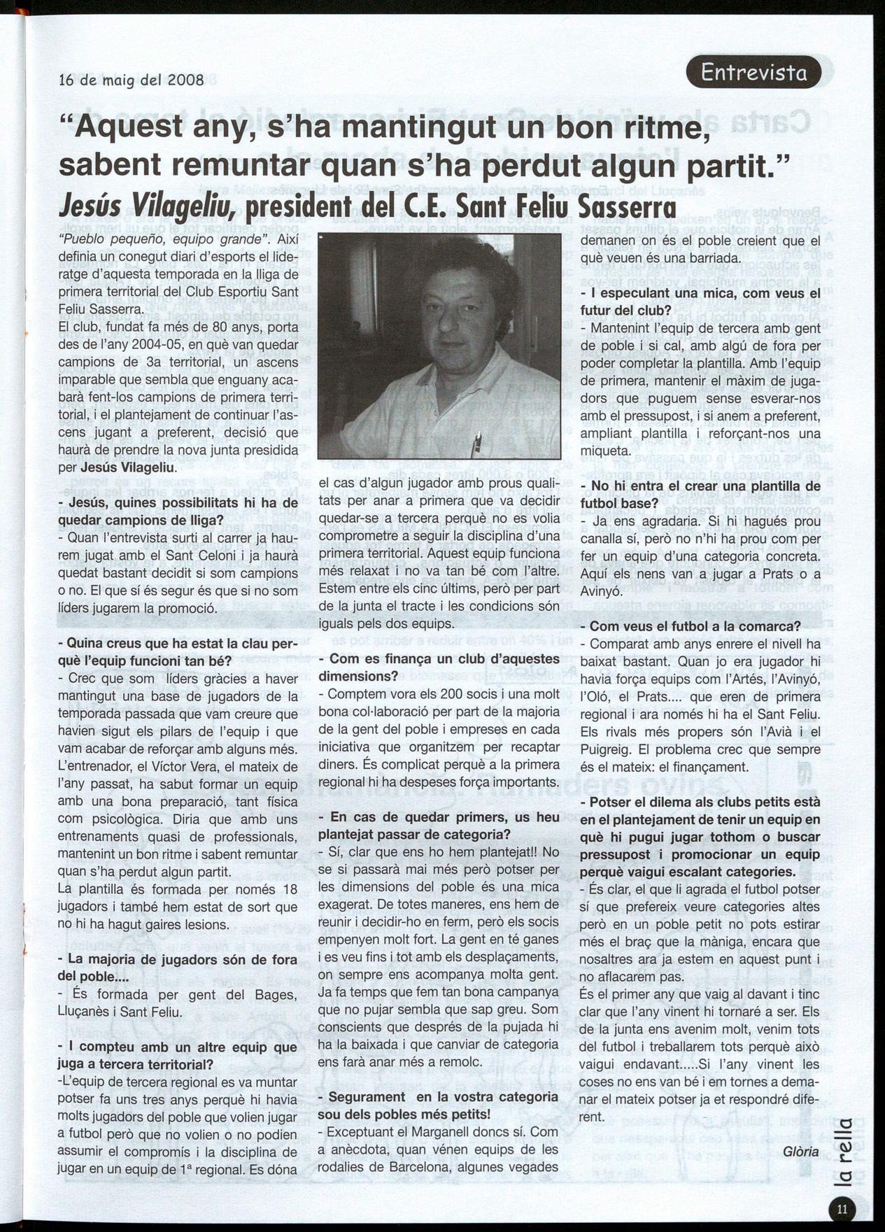 Sani Feliu Sasserra.- El C.E. Sant Feliu Sasserra va aconseguir el passat diumenge l'ascens matemàtic a Preferent. Així, completa una fita que passarà a la història que és inversemblant en un poble de les característiques de Sant Feliu.
