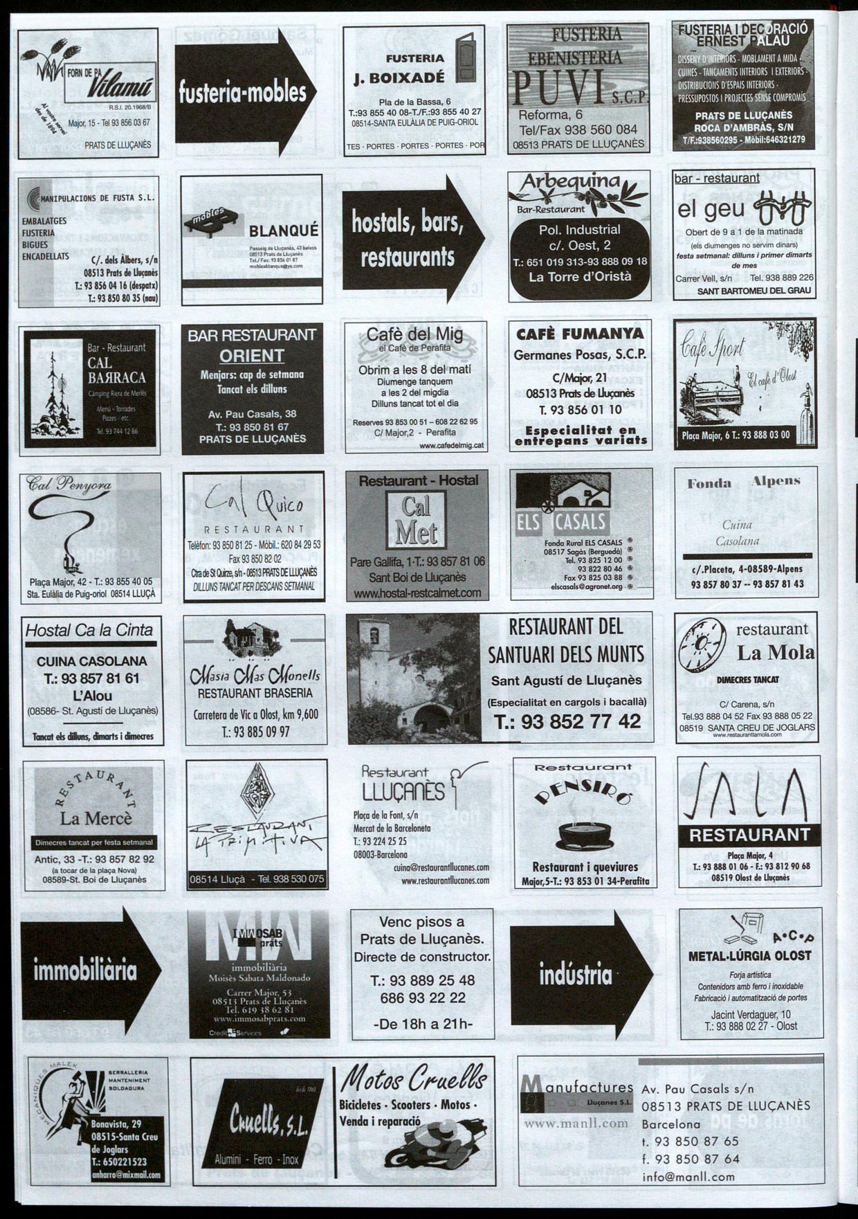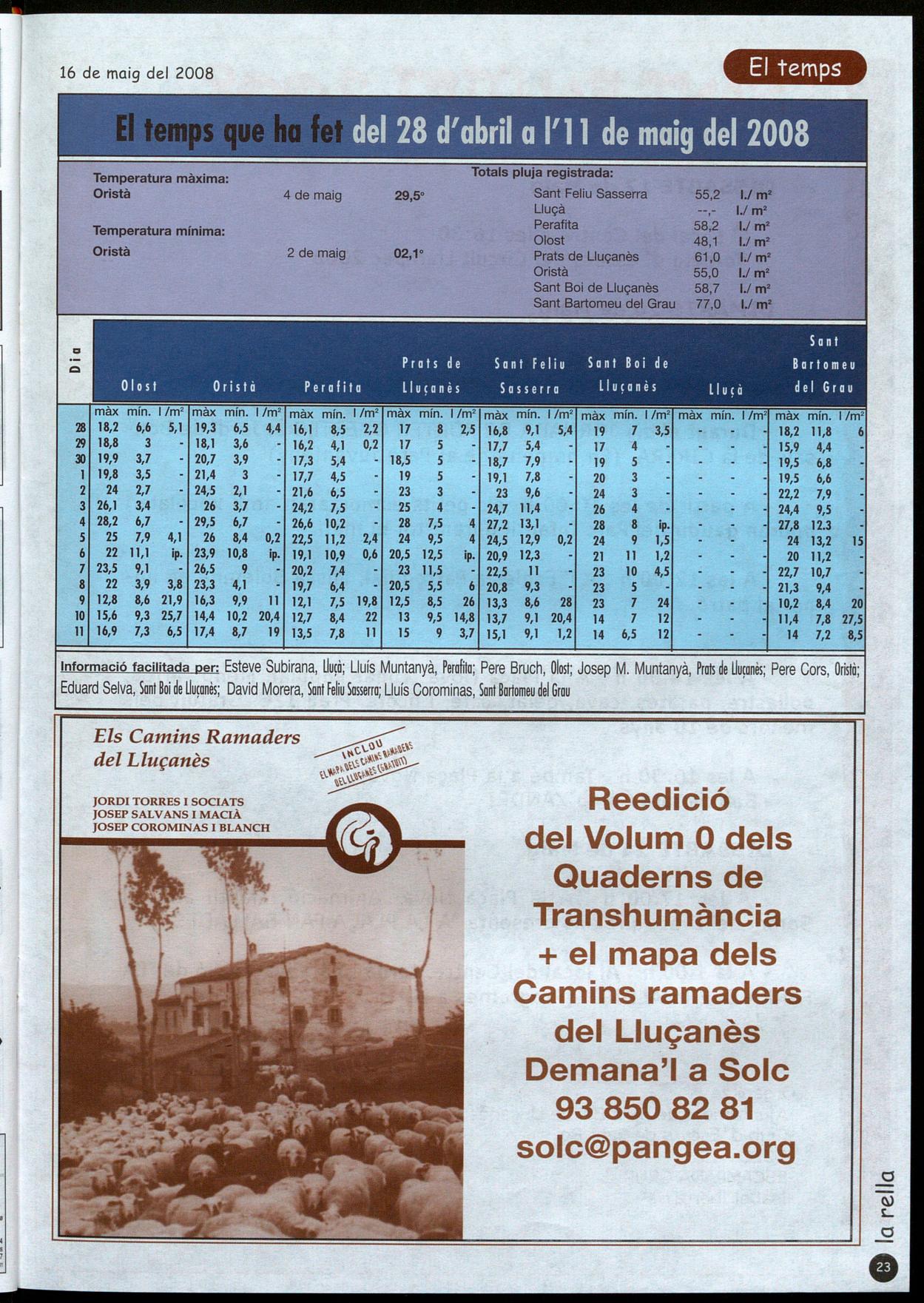 Informació facilitada per: Esteve Subirana, UU¡Ò; Lluís Muntanyà, Perolilo; Pere Bruch, Olost; Josep M. Muntanyà, Prots �e Uu¡onès; Pere Cors, Oristò; Eduard Selva, SontBai �e lIu¡onès; David Morera, Sont Feliu Sosserro; Lluís Corominas, SontBortomeu �el Grou Els Camins Ramaders del Lluçanès