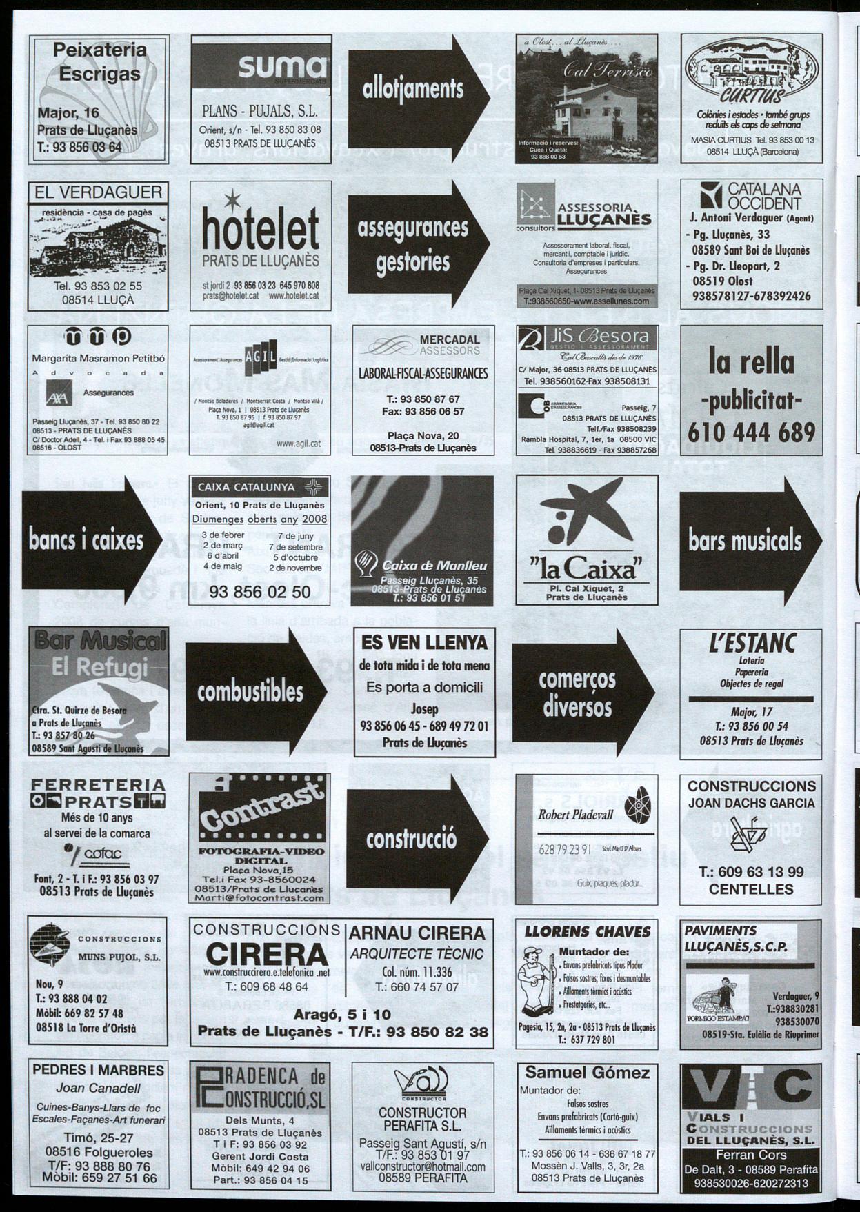 Informació facilitada per: Esteve Subirana, Llu¡à; Lluís Muntanyà, Perafita; Pere Bruch, Olost; Josep M. Muntanyà, Prats �e Llu¡onès; Pere Cors, Oristà; Eduard Selva, Sant Boi �e Llu¡onès; David Morera, Sant feliu Sasserra; Lluís Corominas, Sant Bartomeu �el Grau