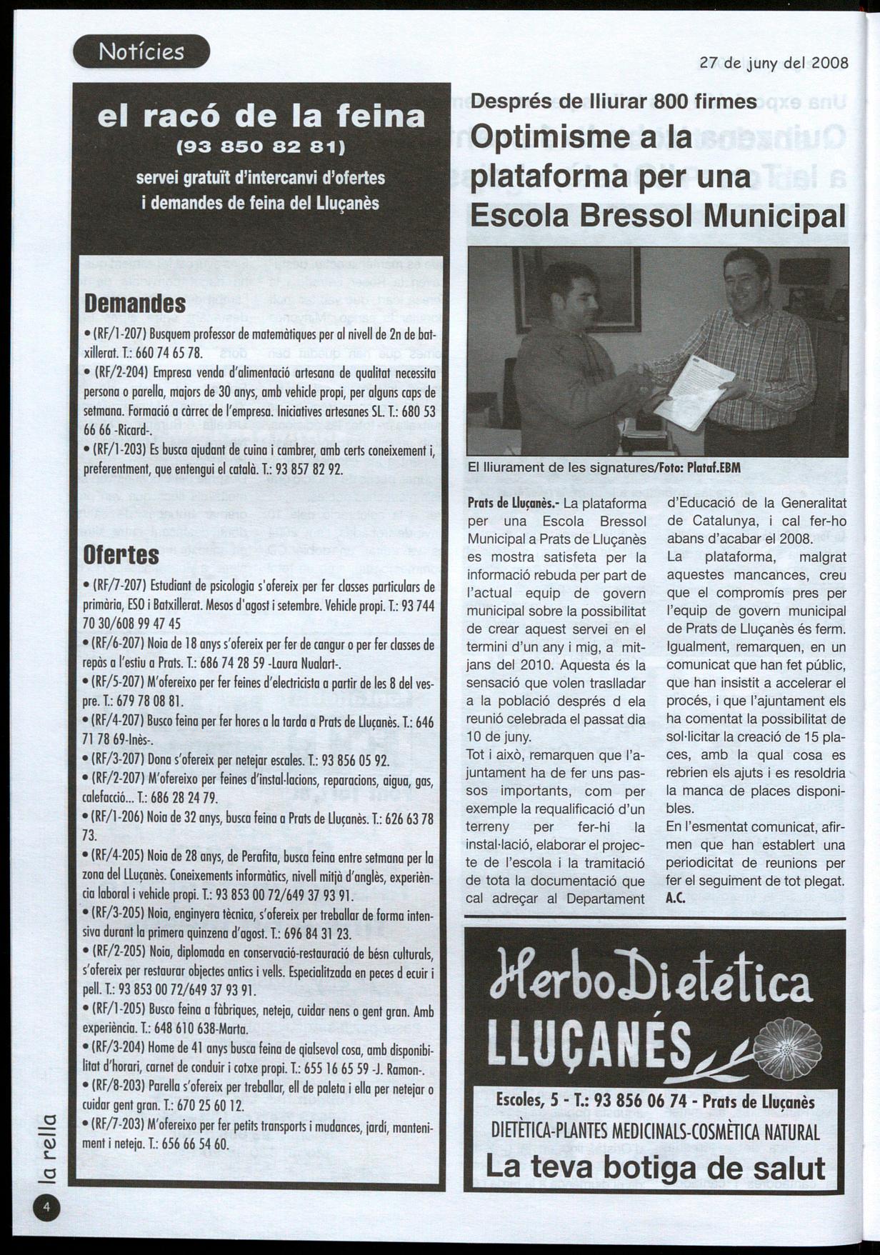 servei gratuït d'intercanvi d'ofertes i demandes de feina del Lluçanès