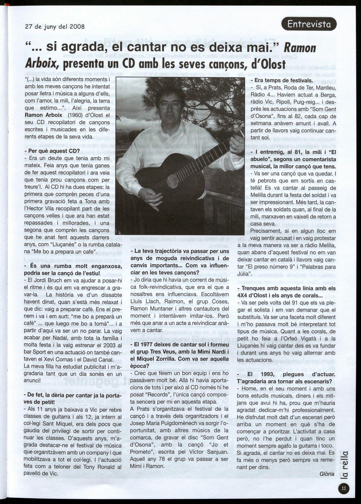 vinguts d'arreu per a pujar dalt de l'escenari a oferir el seu repertori. Com altres vegades s'espera que hi hagi una alta participació amb reprësentats de diferents generacions, i sobretot de la comarca del Lluçanès. R.R.
